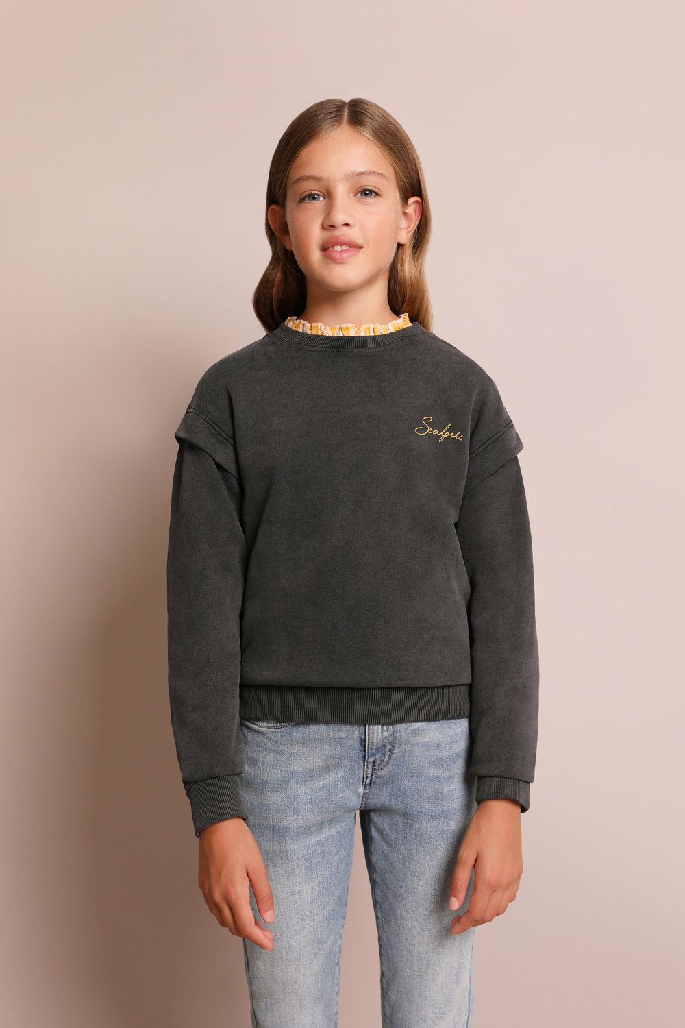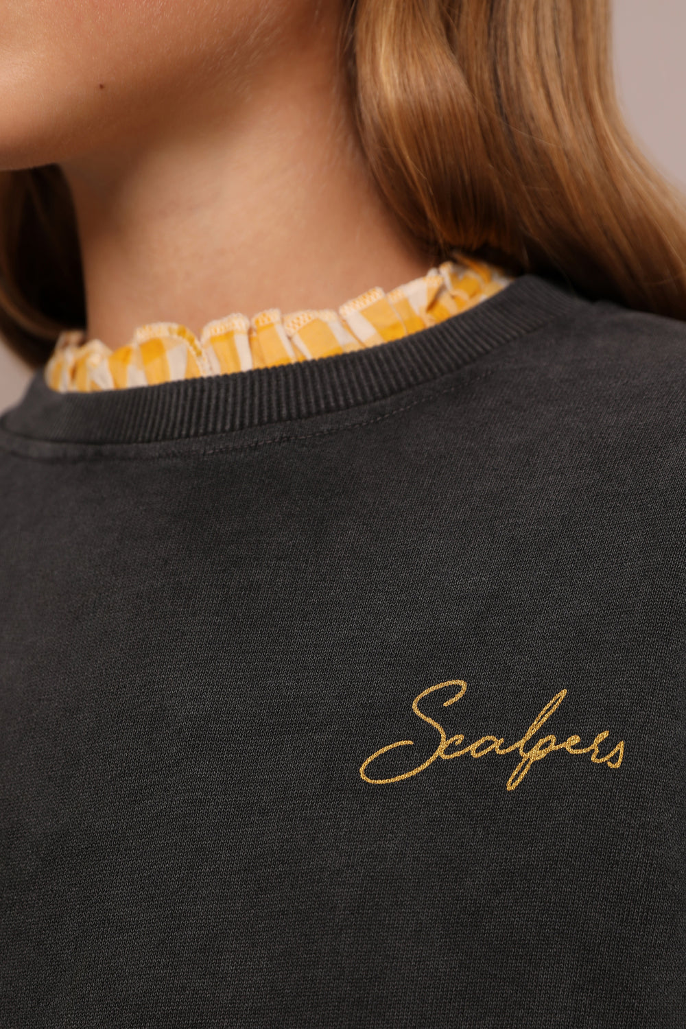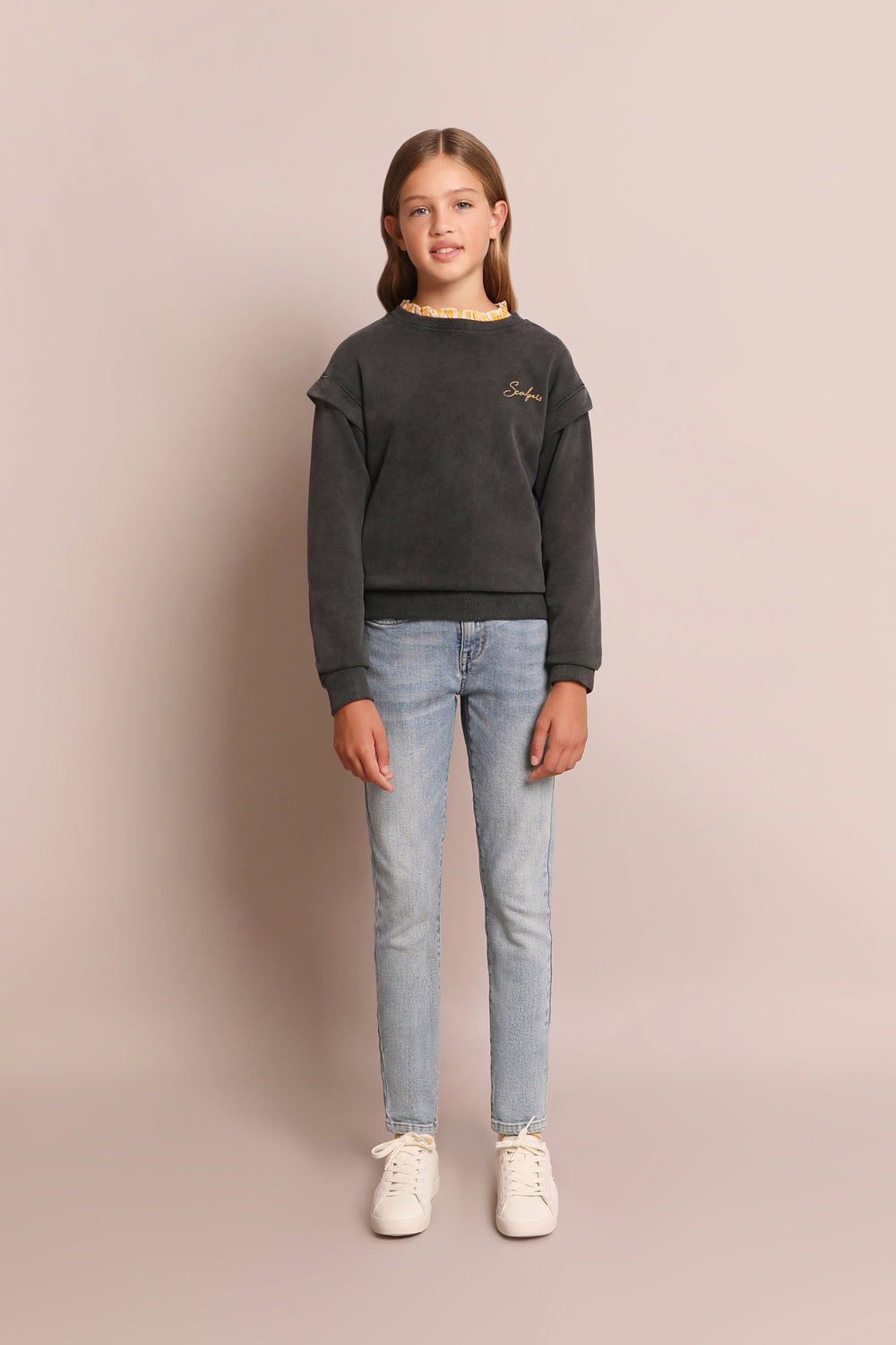 - Detalle de bordado a contraste en el pecho