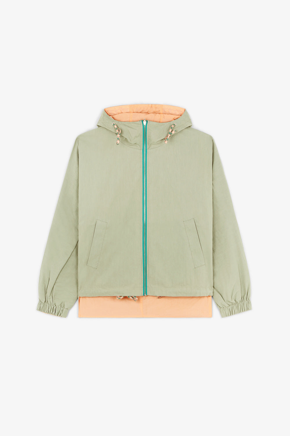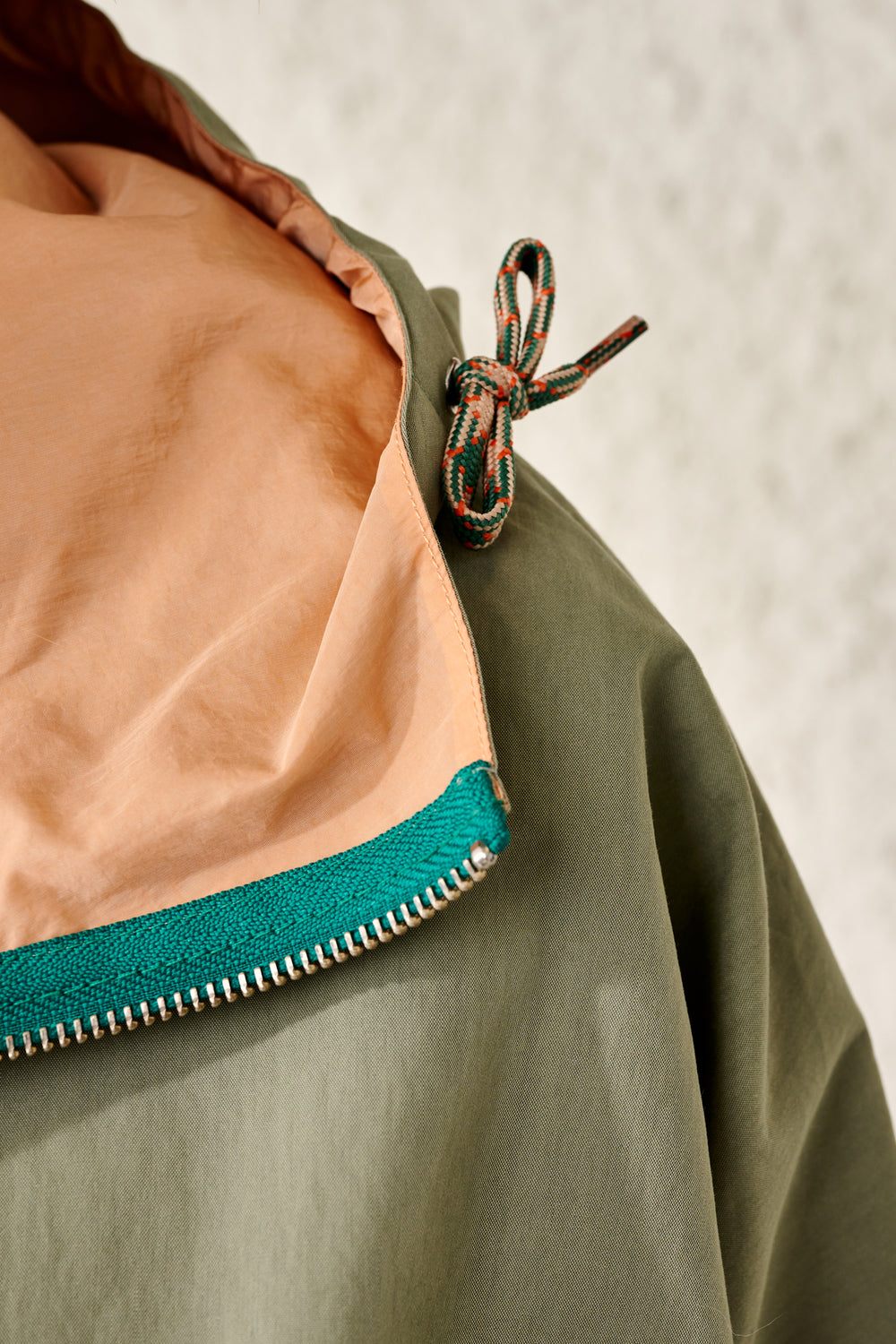 • Cordones en contraste en el bajo y la capucha.