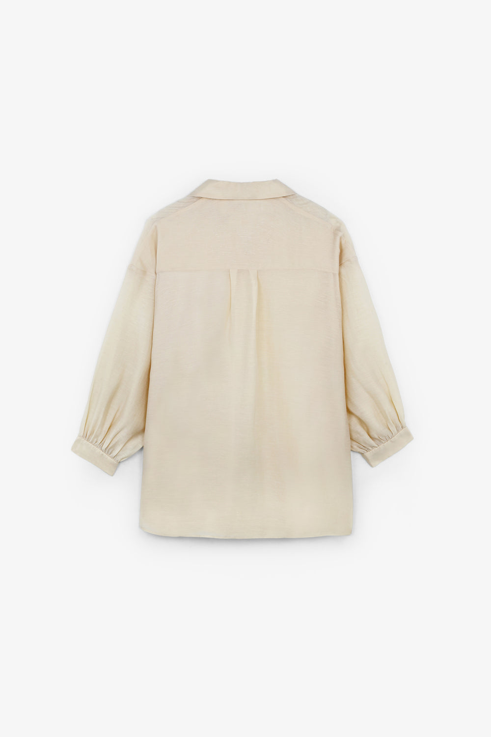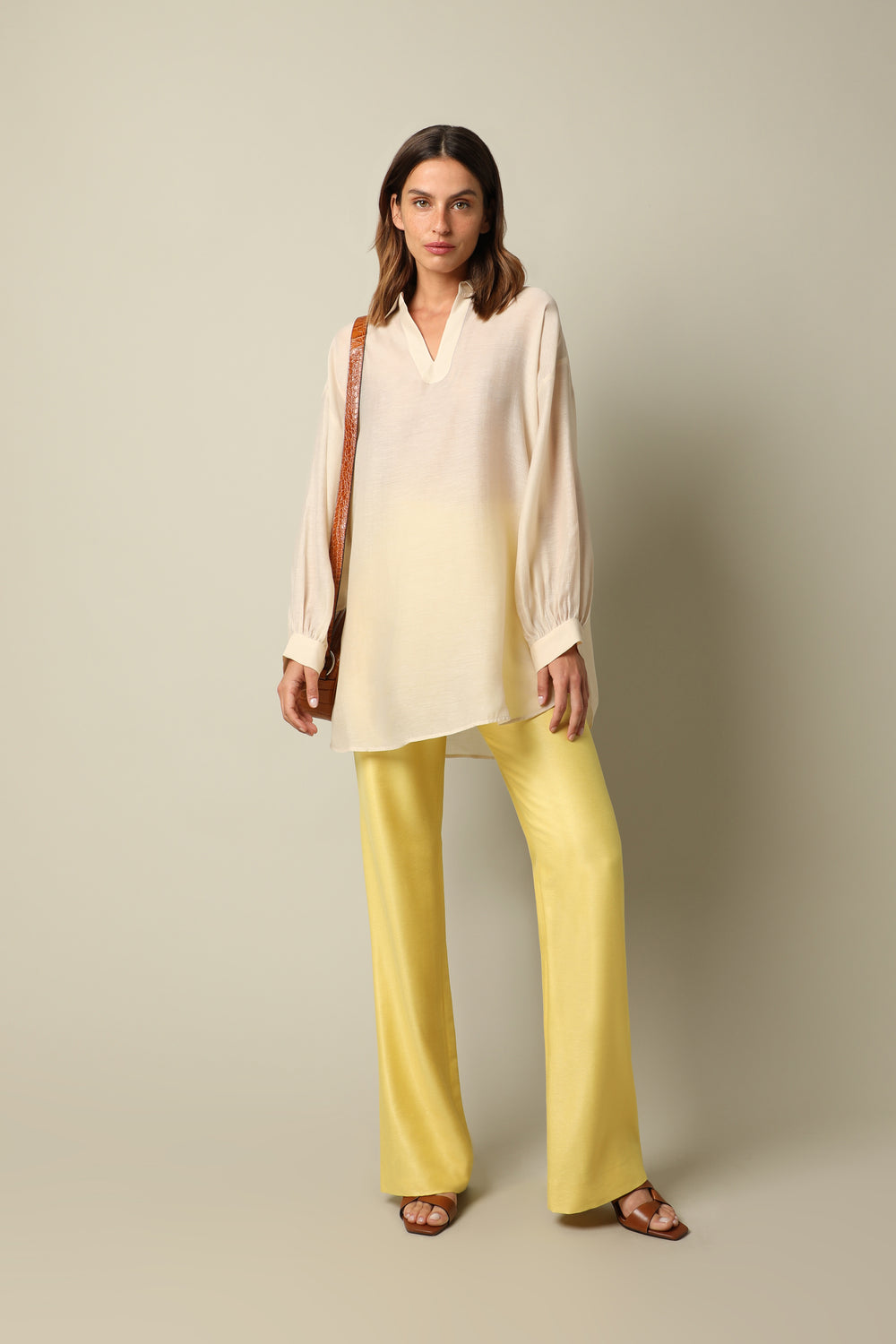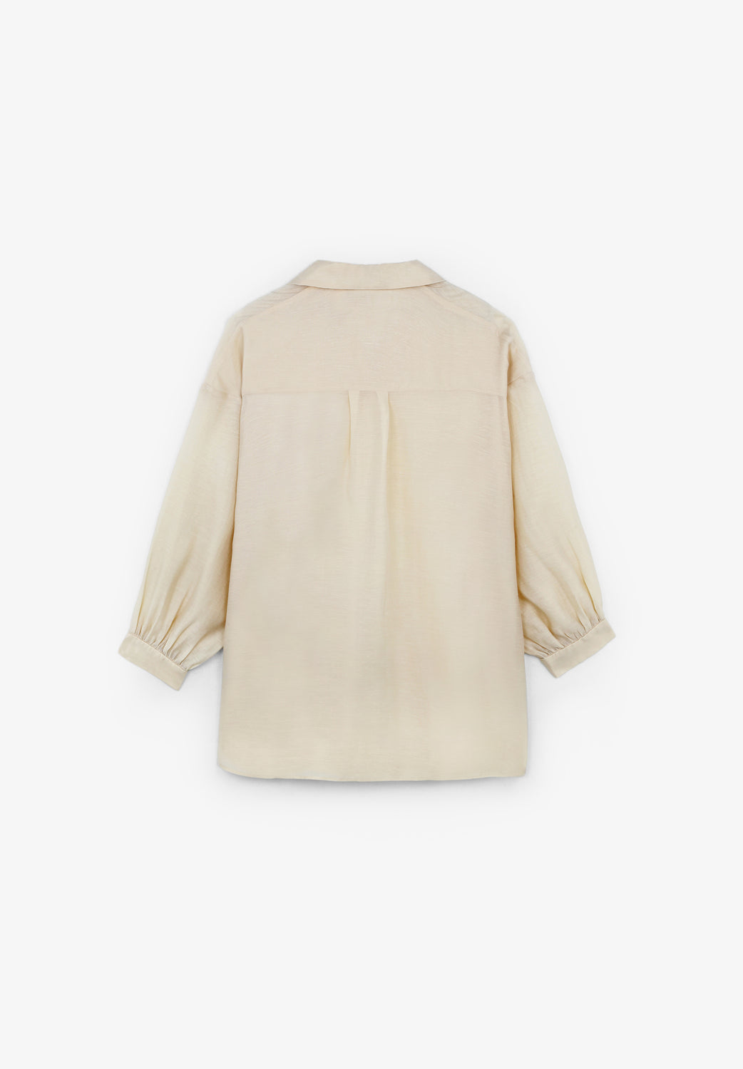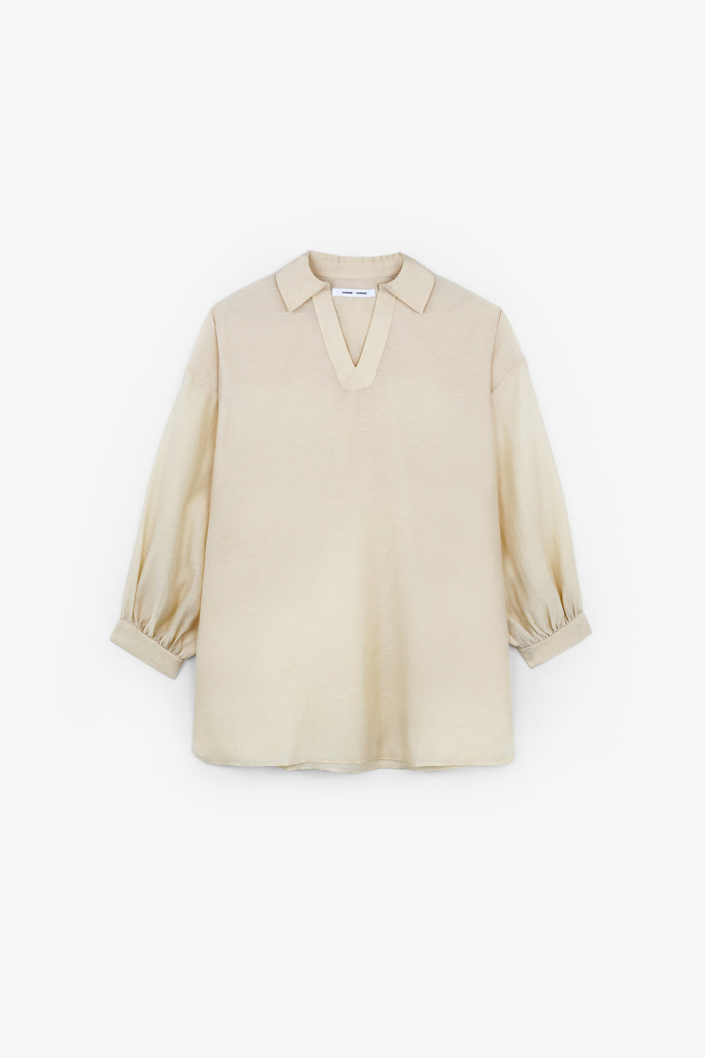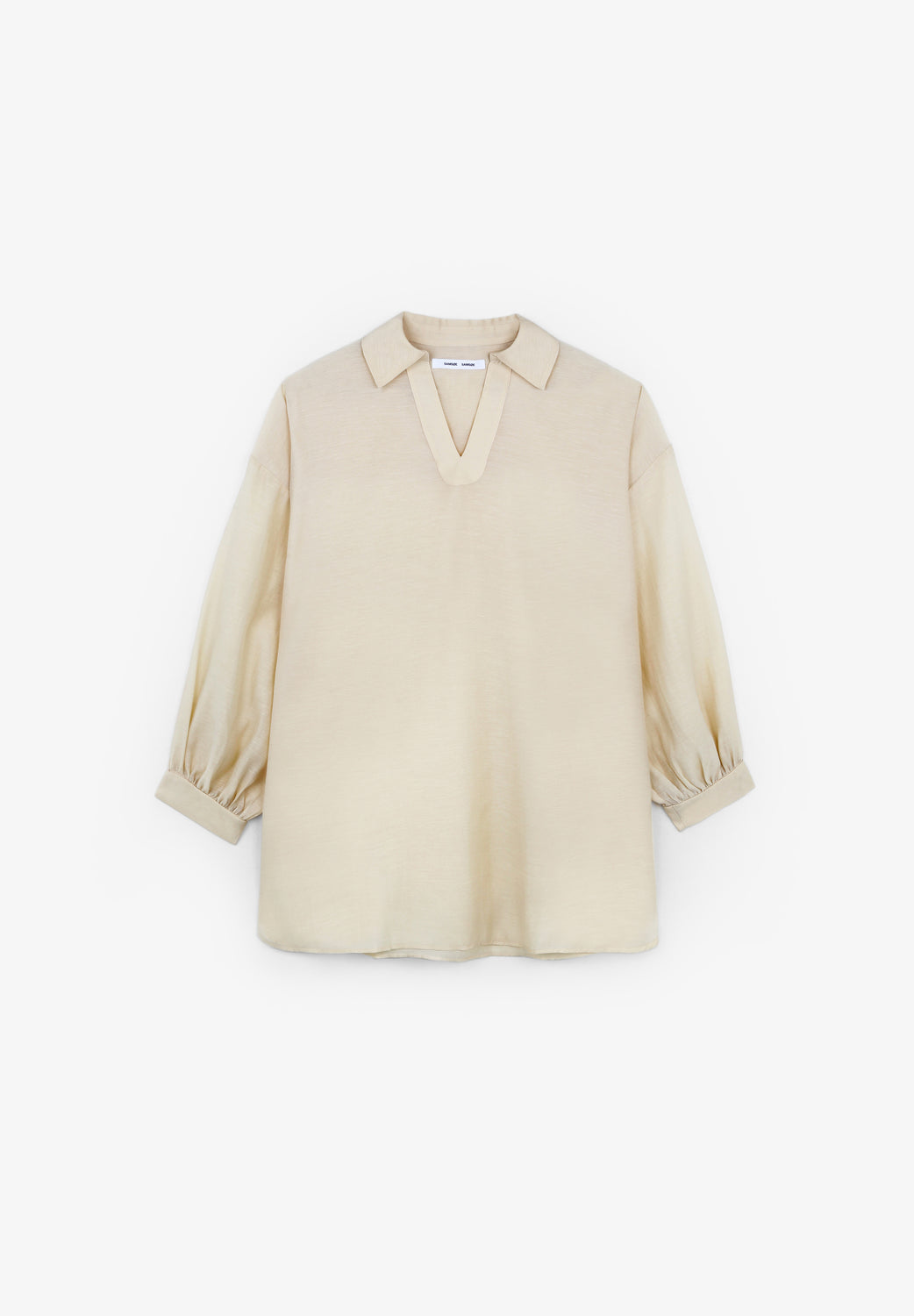 Blusa confeccionada en tejido mezcla de tencel, poliéster y lino.