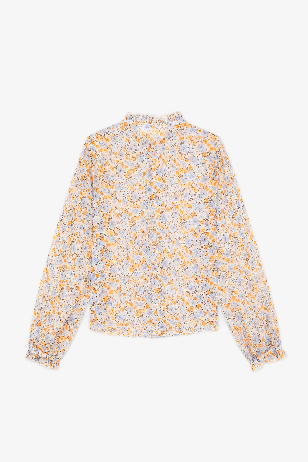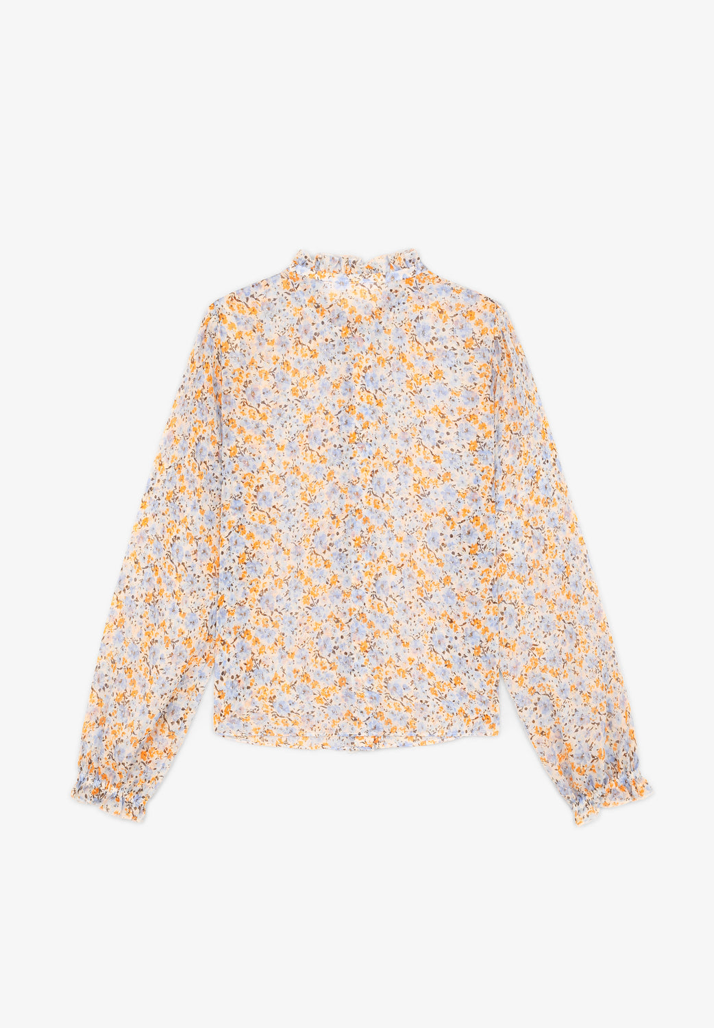- Mangas largas con hombros fruncidos.