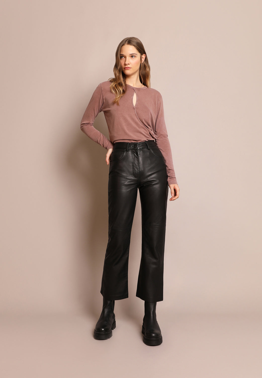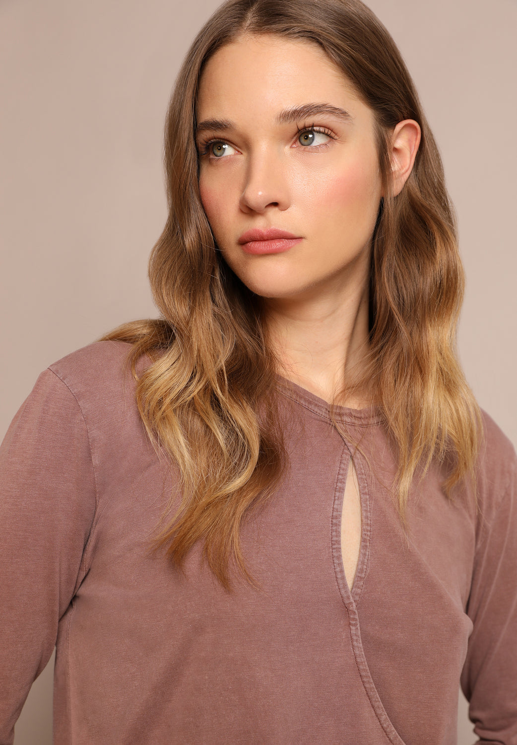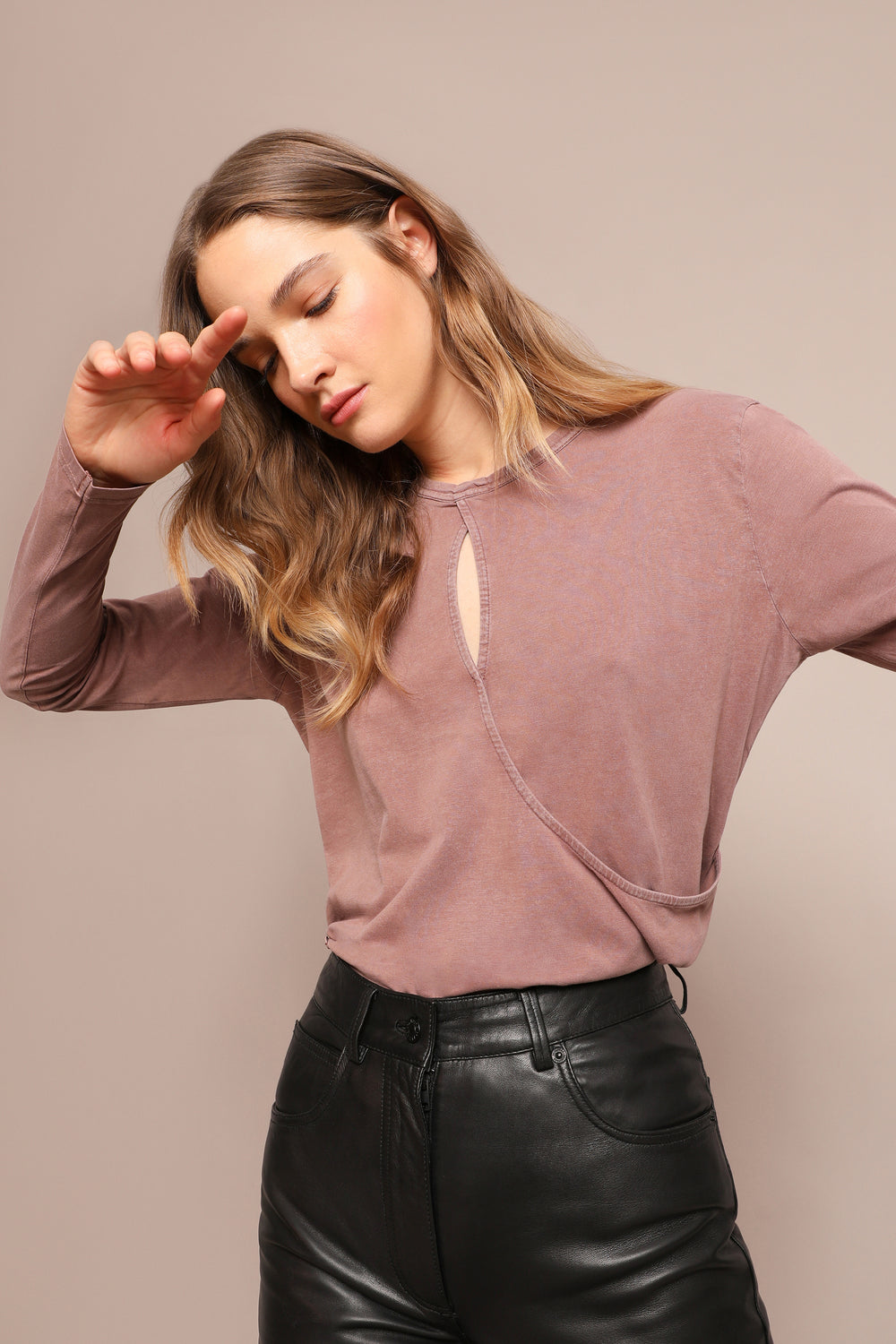 Camiseta lavada con detalle cruzado en la parte delantera.