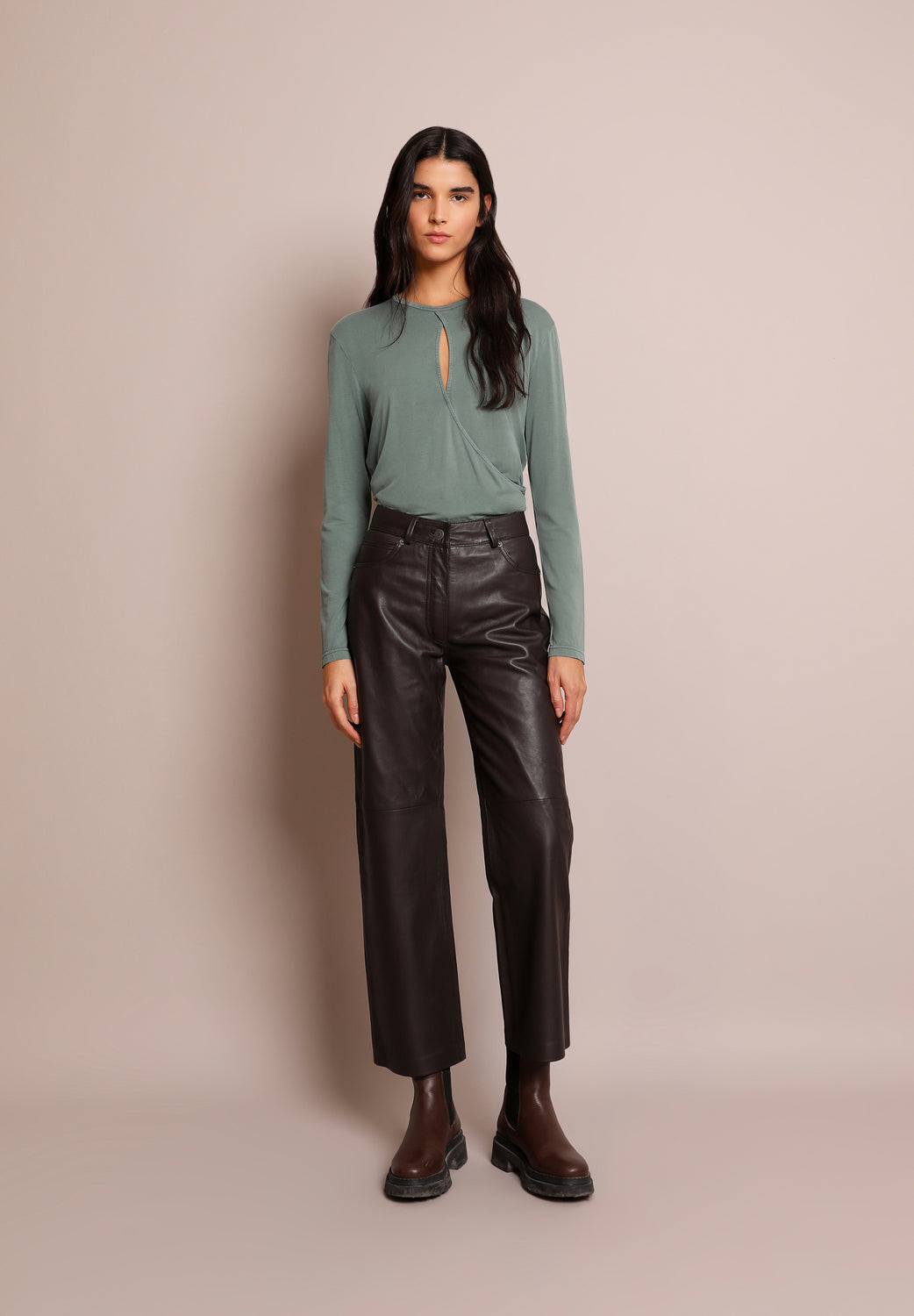 Camiseta lavada con detalle cruzado en la parte delantera.