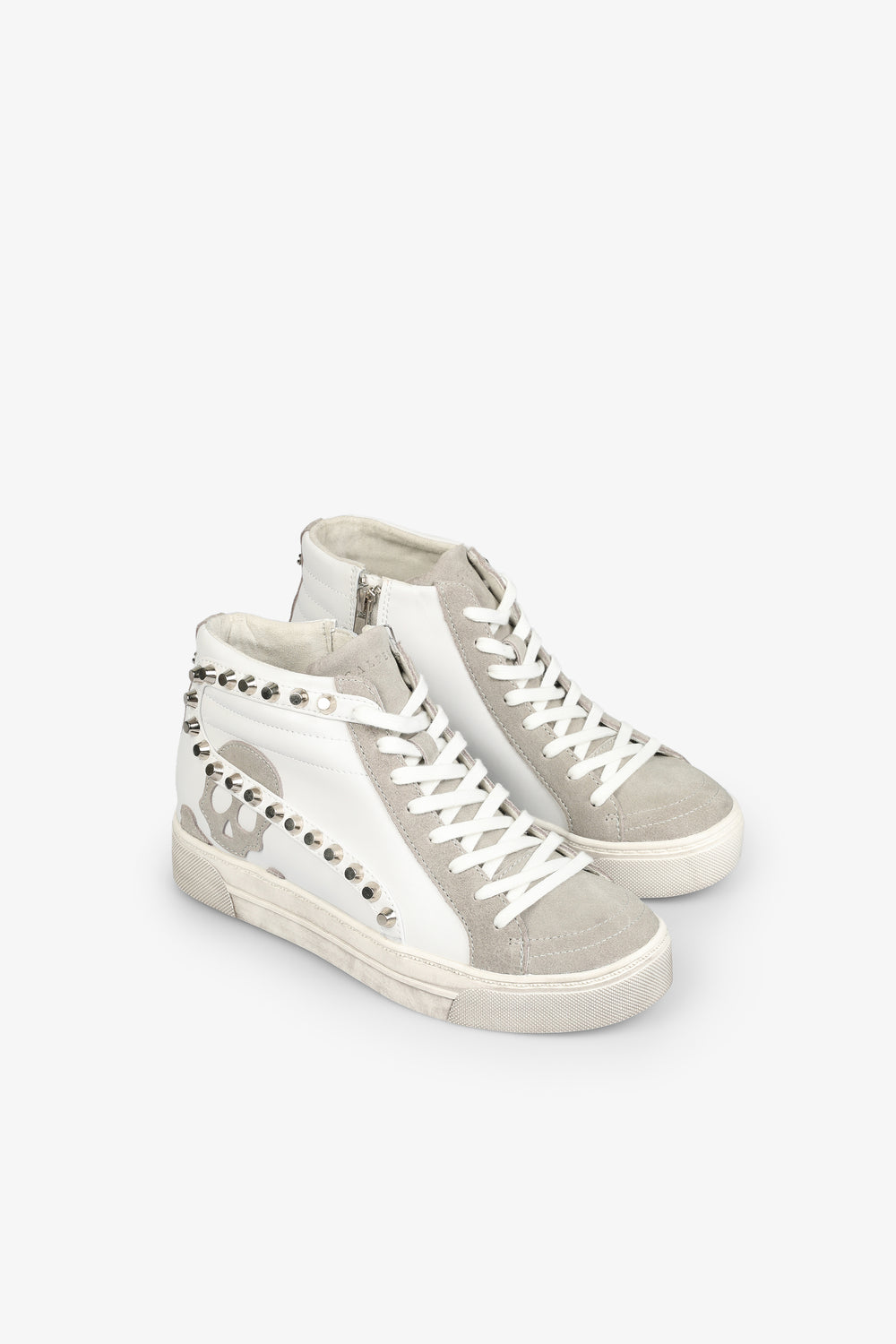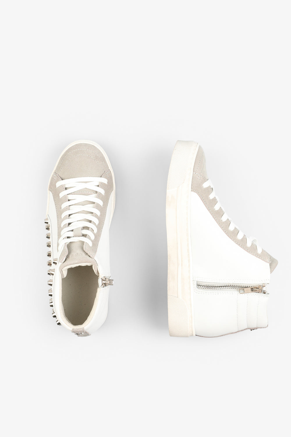 - Cierre con cordones a contraste y cremallera lateral metálica