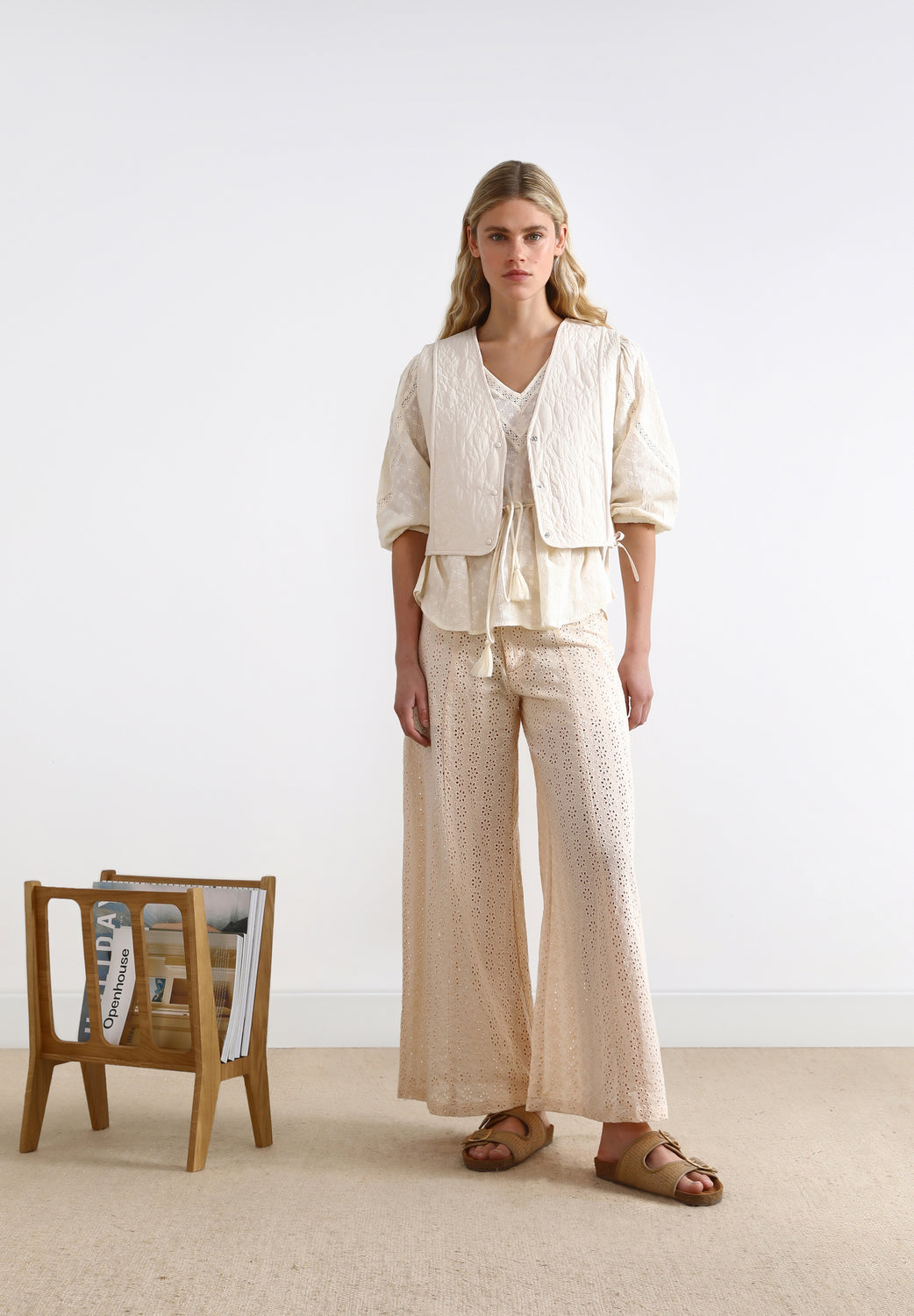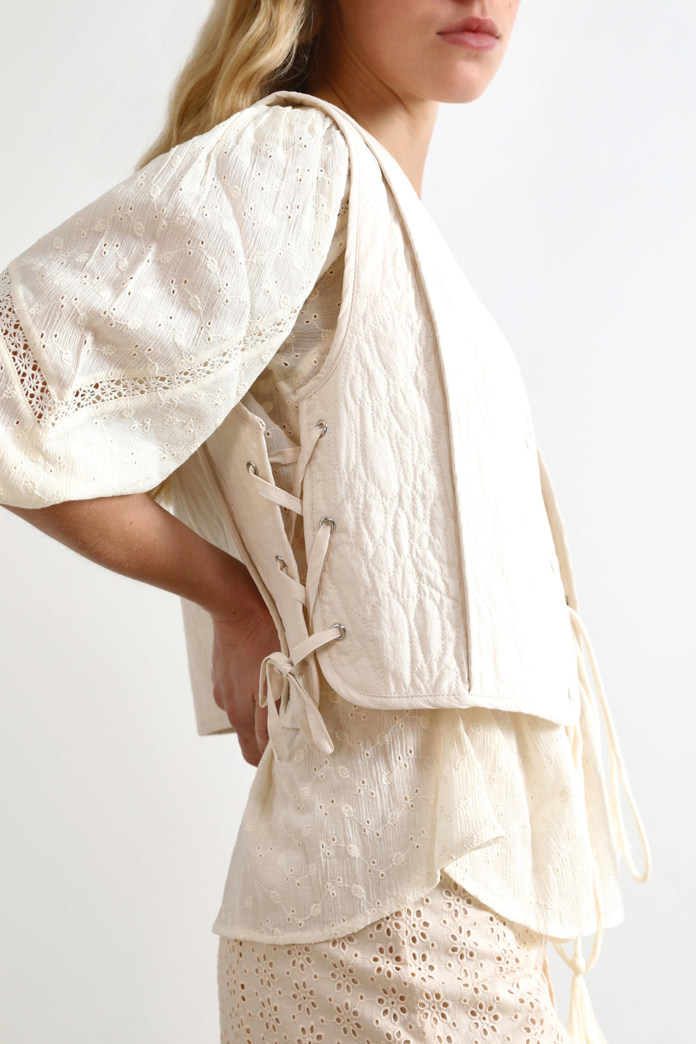 Chaleco acolchado con lazadas laterales.