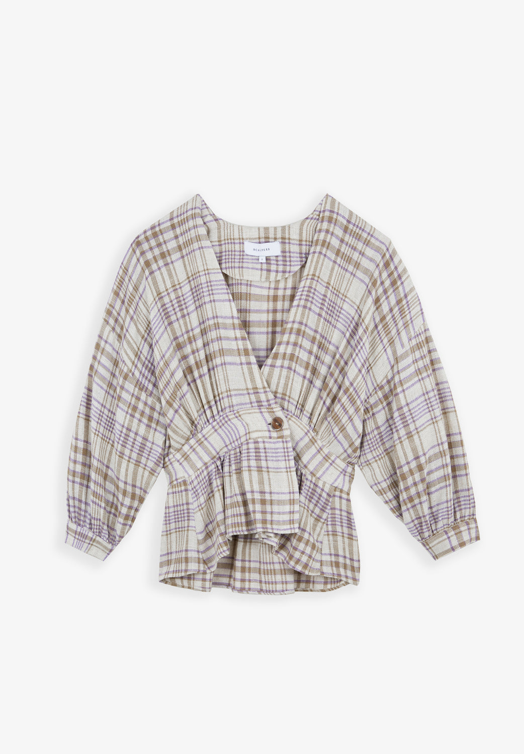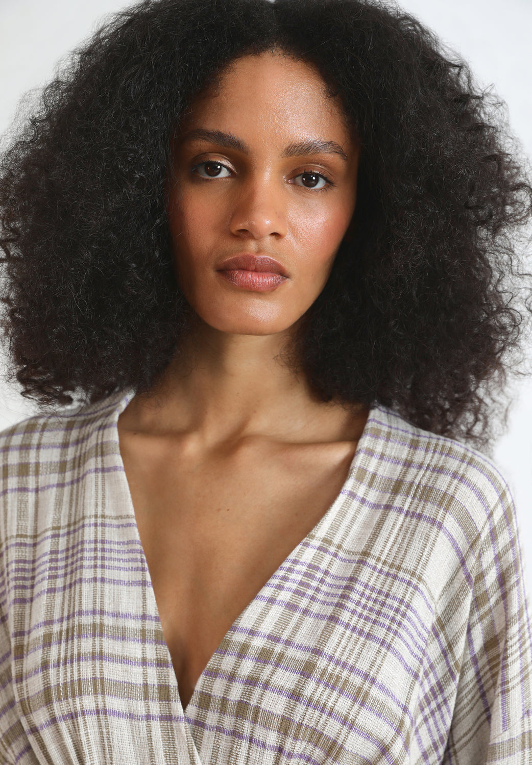 Chaqueta tipo kaftán ligera de cuadros.