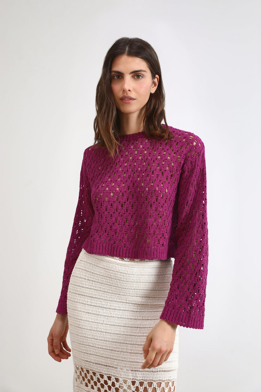 Jersey de crochet tipo crop top.