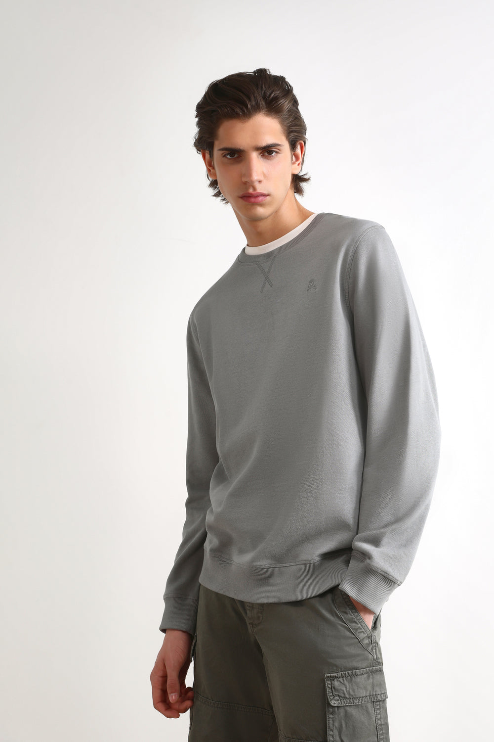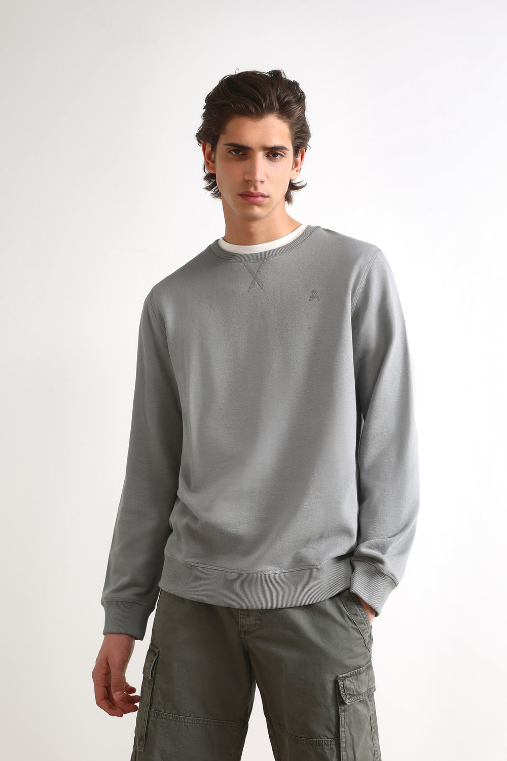 Sudadera básica con la calavera a tono y ribs en puños y bajo,