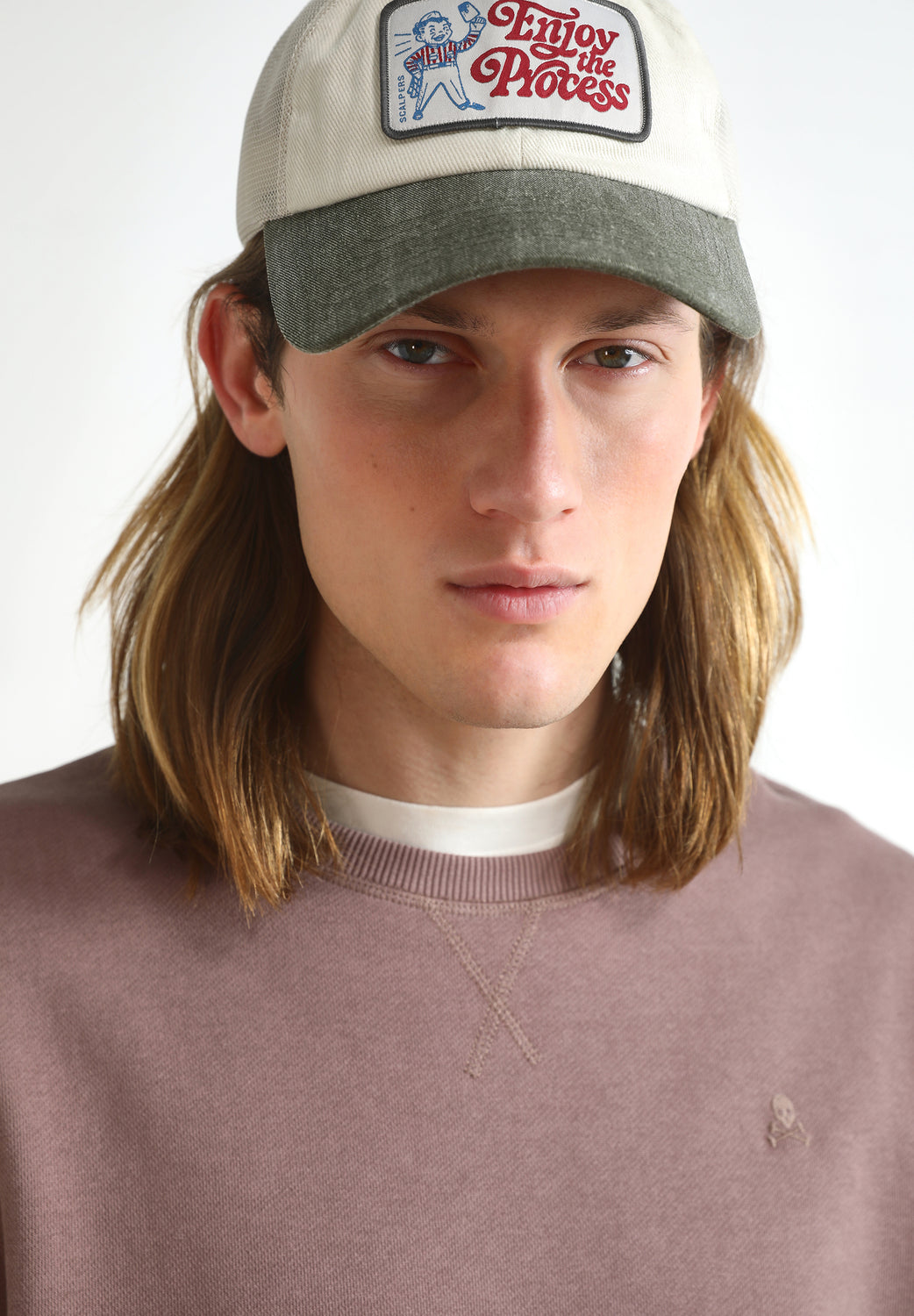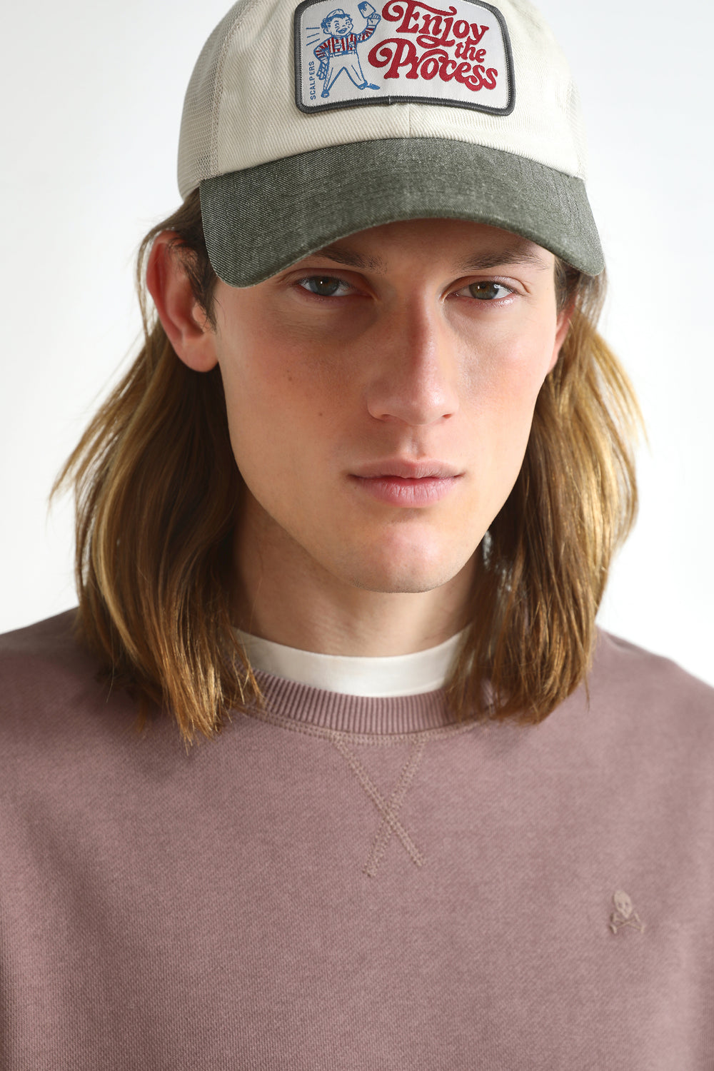Sudadera básica con la calavera a tono y ribs en puños y bajo,