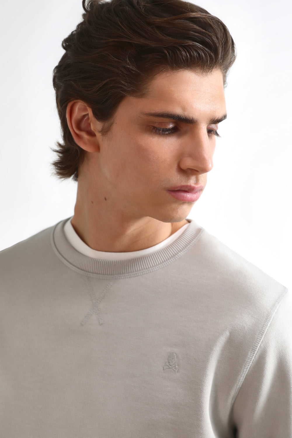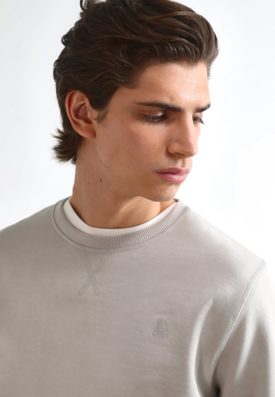 Sudadera básica con la calavera a tono y ribs en puños y bajo,