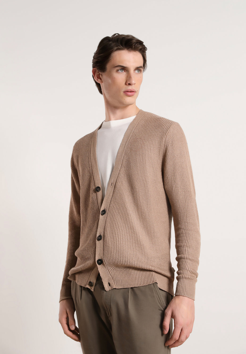 Cárdigan fino con tejido de canalé.