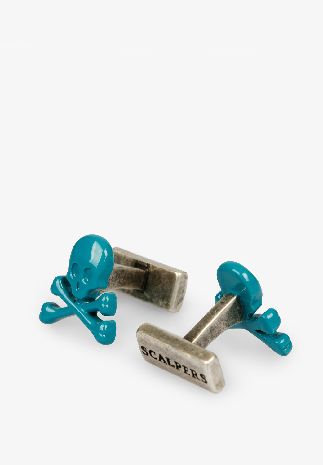 Gemelos con forma de calavera en color llamativo.