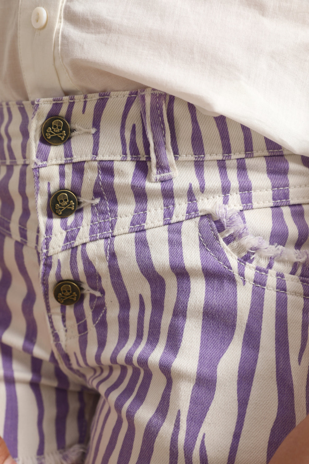 - Bolsillos frontales desflecados y traseros