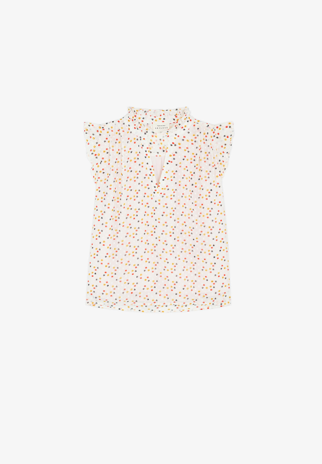 Top tirantes estampado Art Love confeccionado en tejido 100% poliéster.