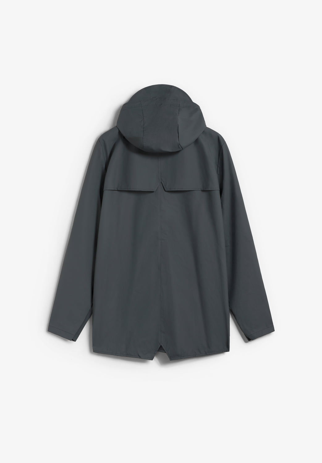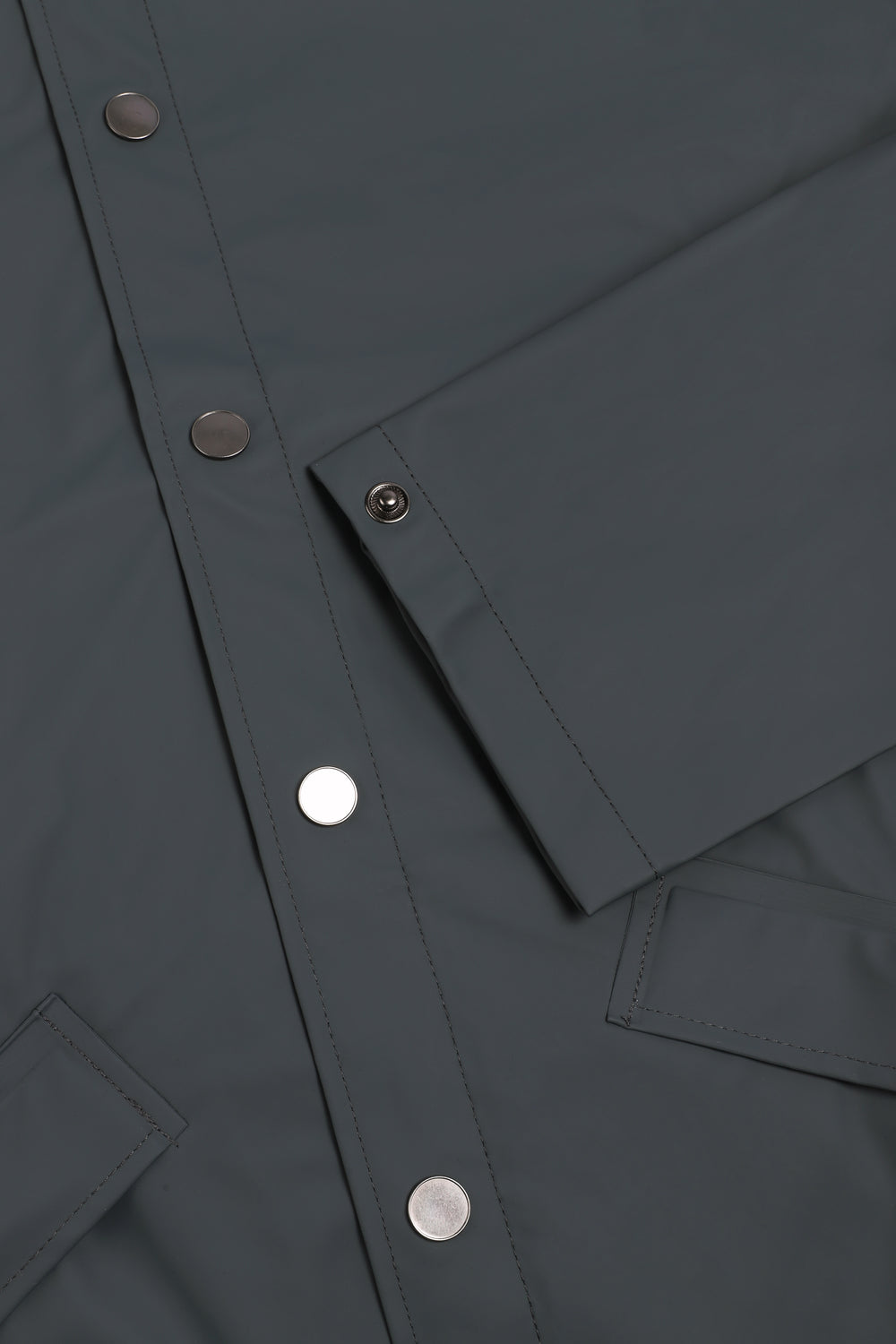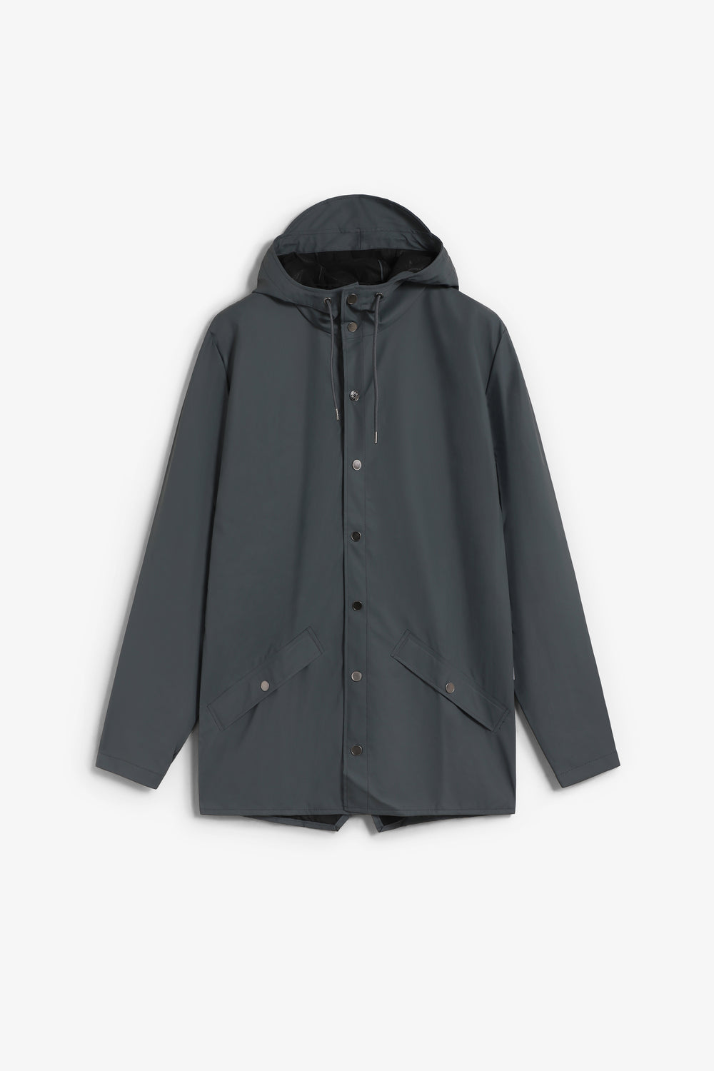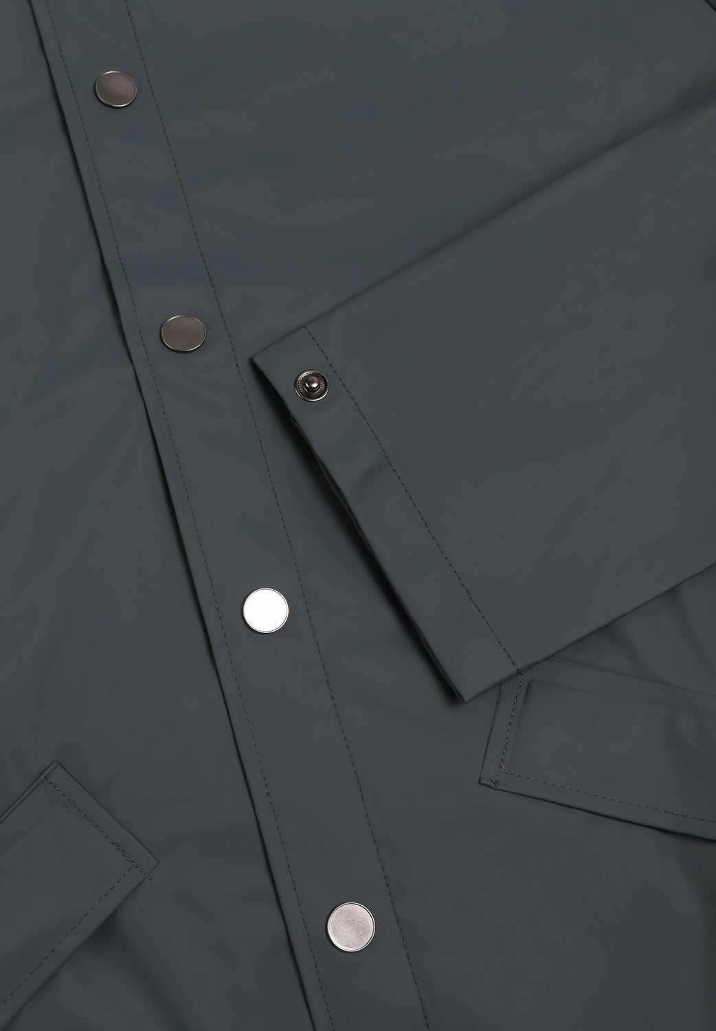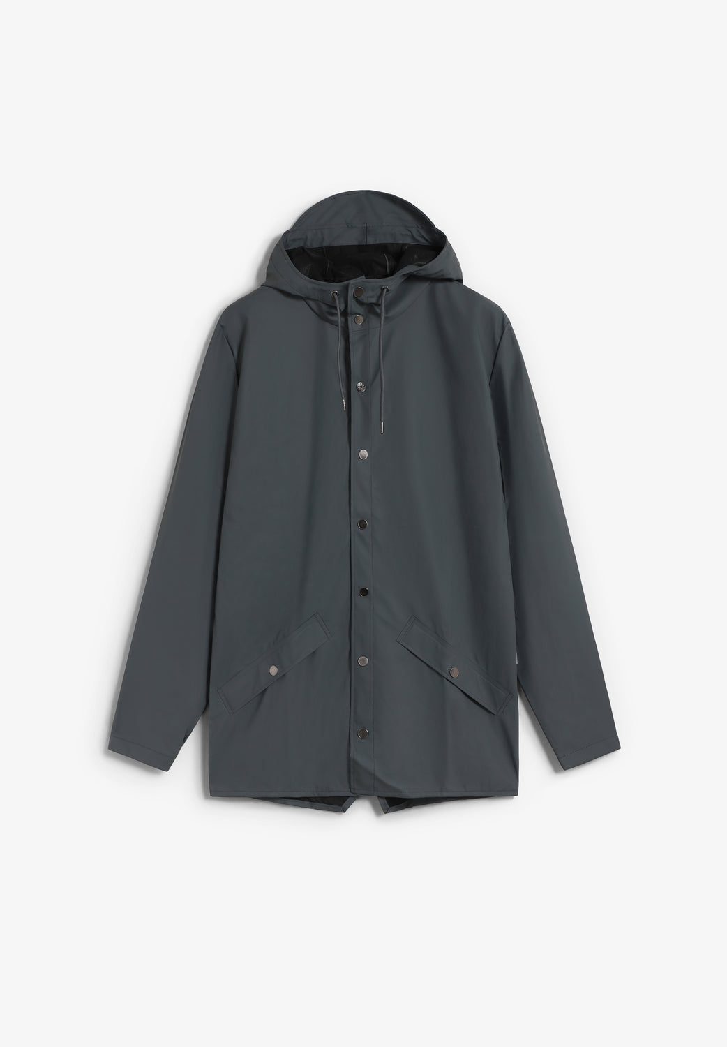 Chaqueta Rains W3 confeccionada en 100% poliéster. Impermeable que presenta una tapeta con botones de presión, capucha con visera incorporada y dos bolsillos laterales con botones a presión. Las mangas presentan botones de presión que permiten un ajuste suelto o recogido. Cuenta con ojales en las axilas y un cenesú trasero con orificios de ventilación ocultos para mayor comodidad y transpirabilidad. Costuras selladas.