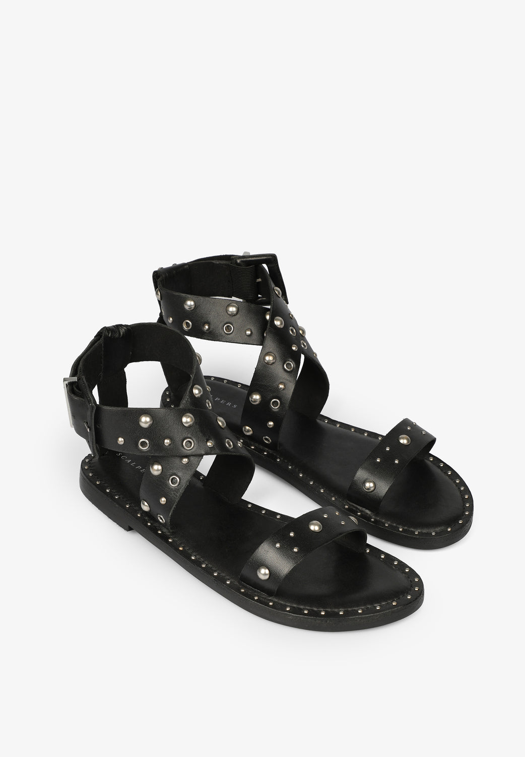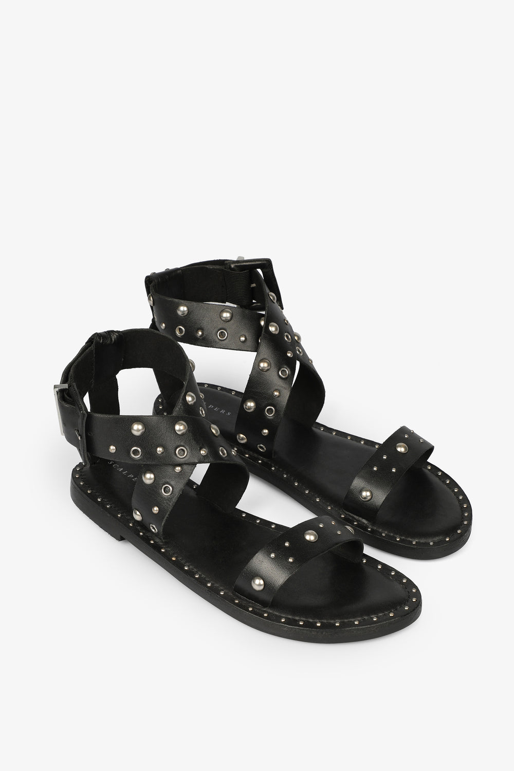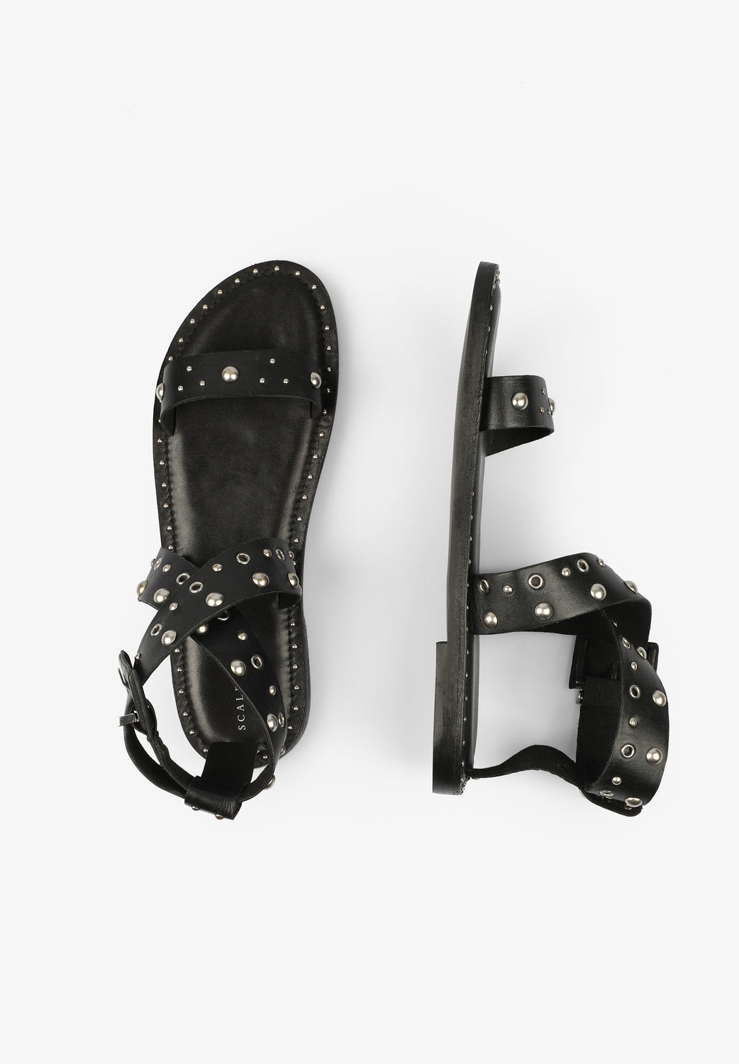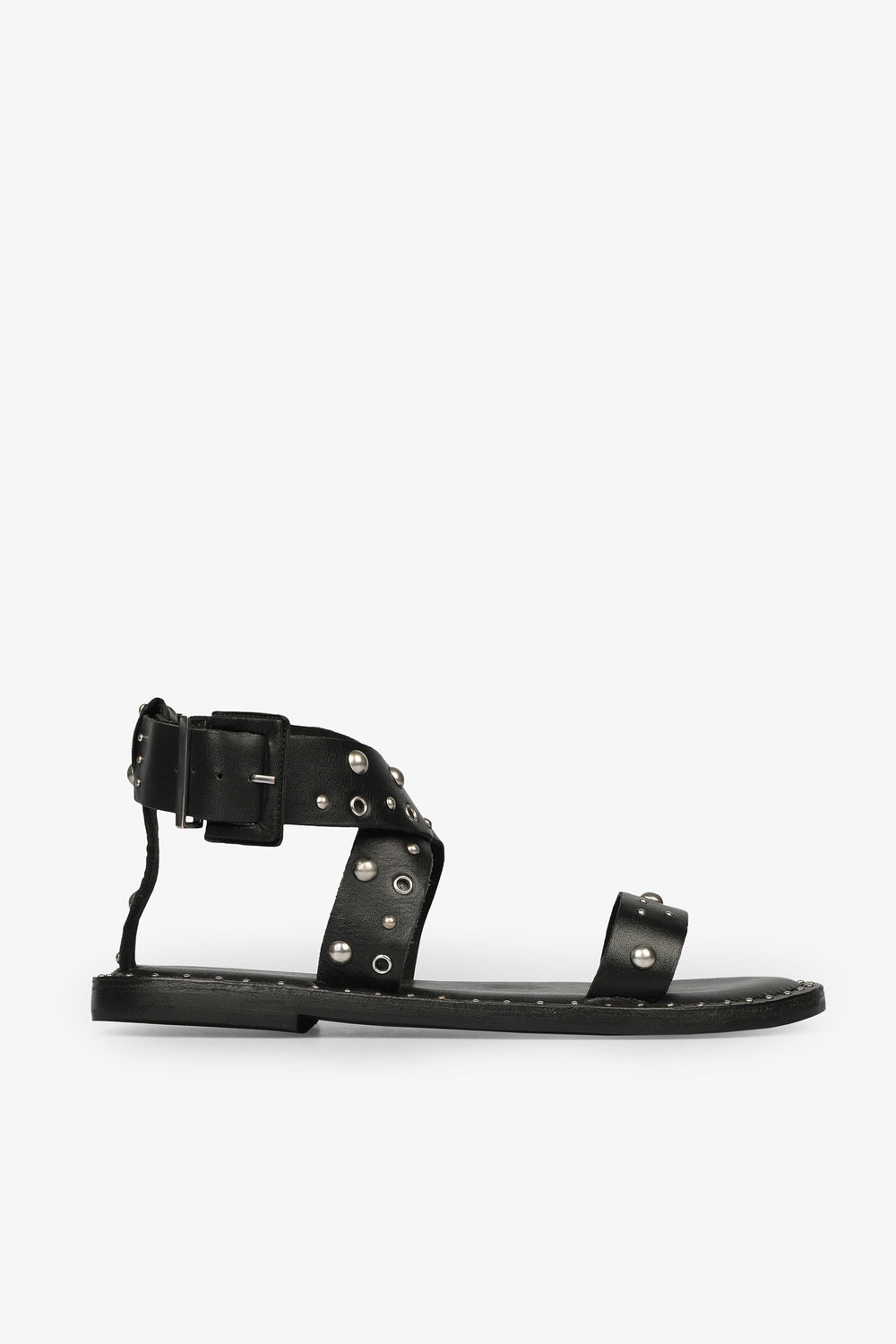 Sandalias cruzadas con tachuelas.