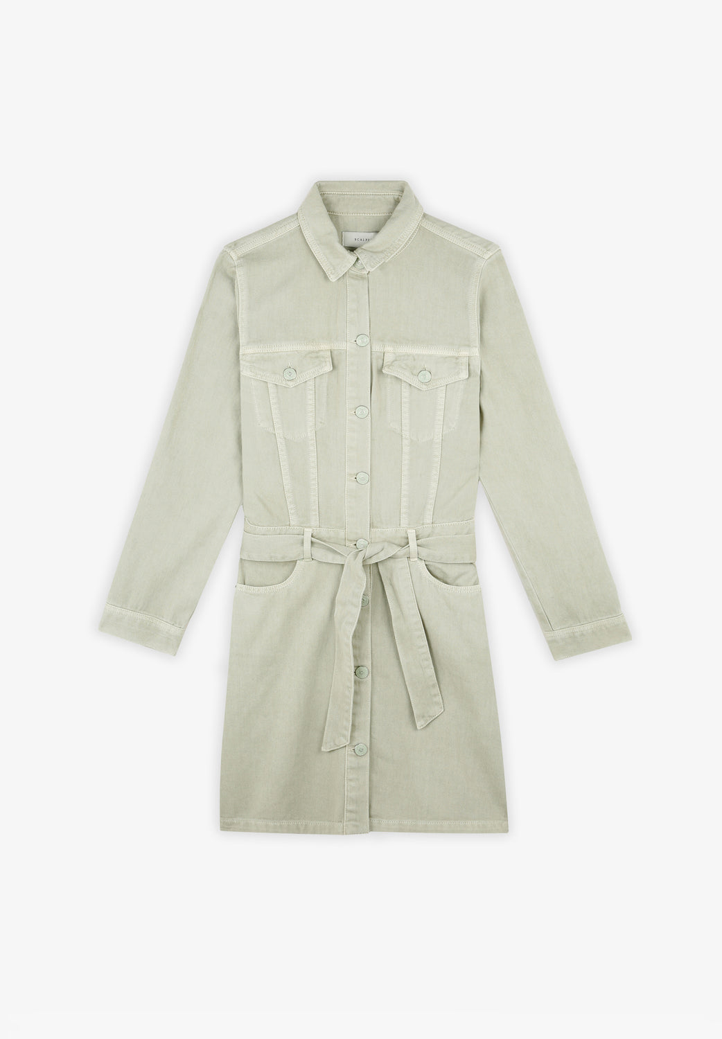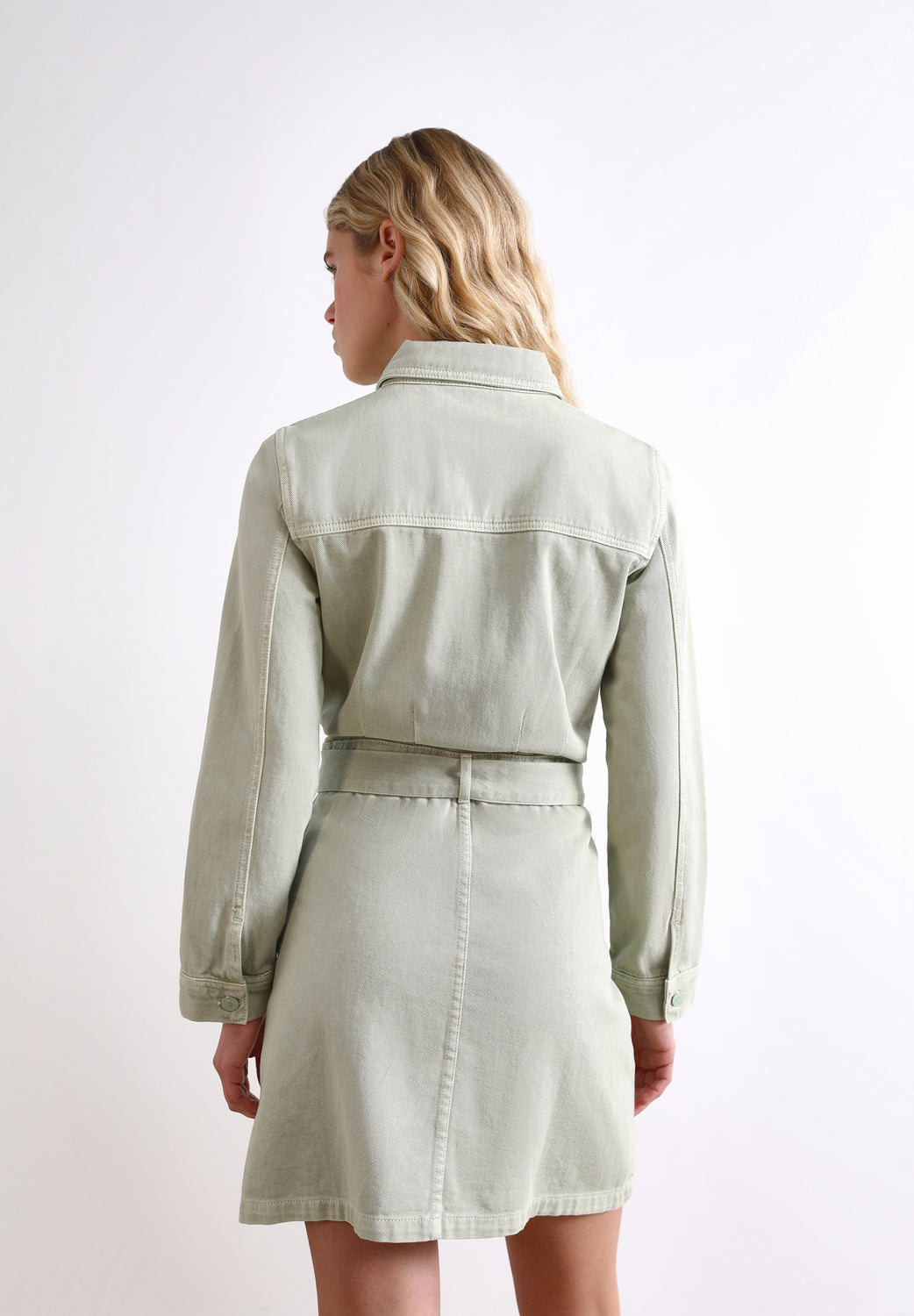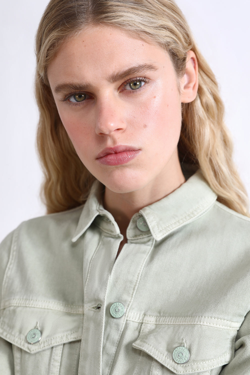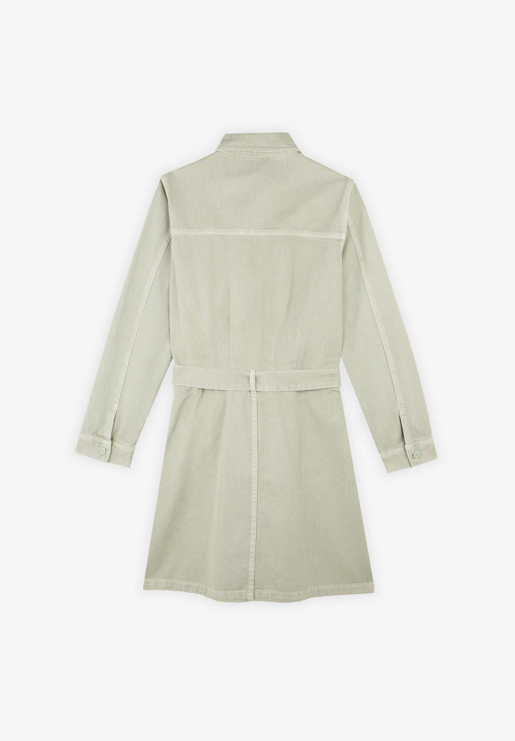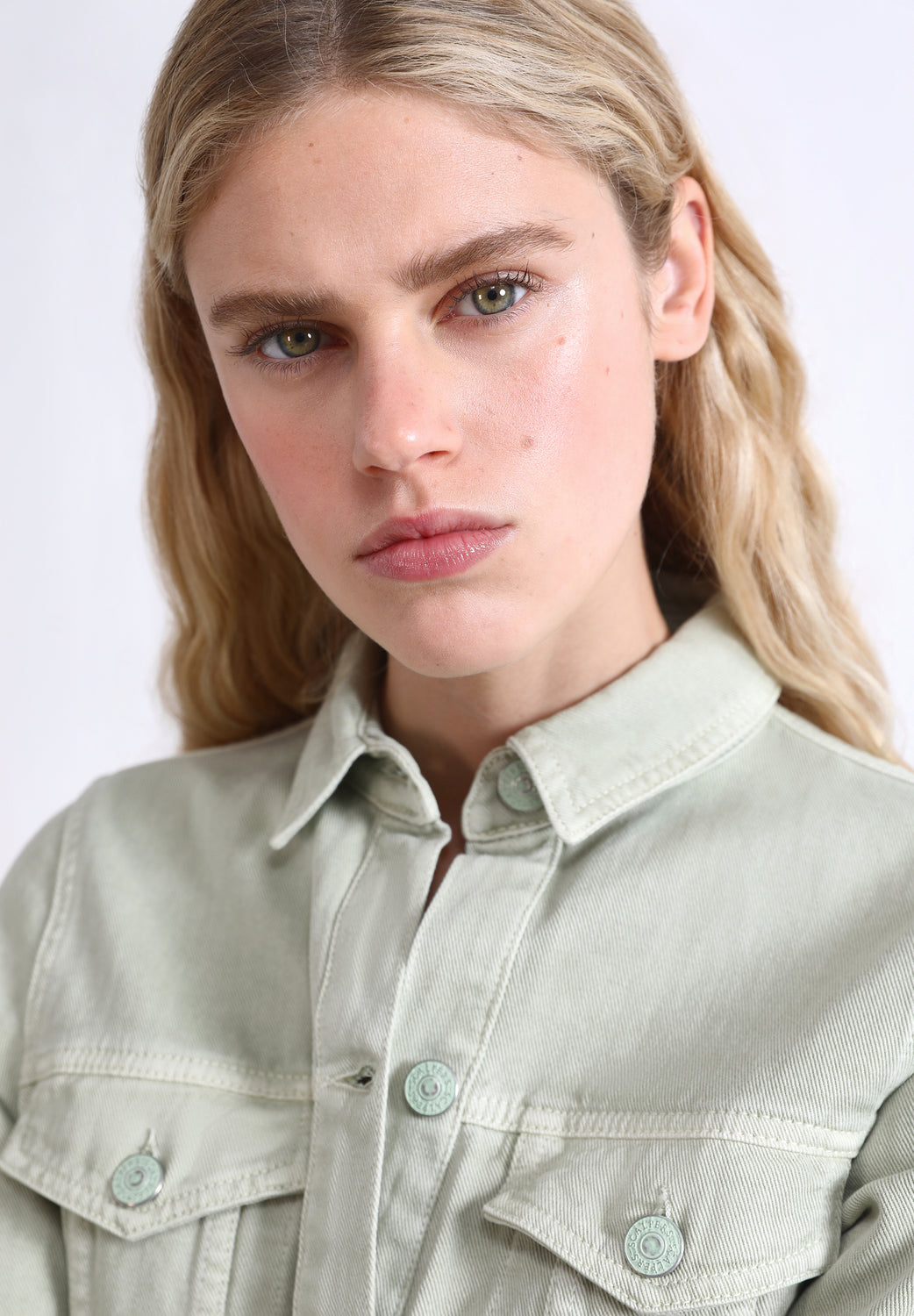 - Bolsillos en pecho con tapeta y botón y en falda insertados