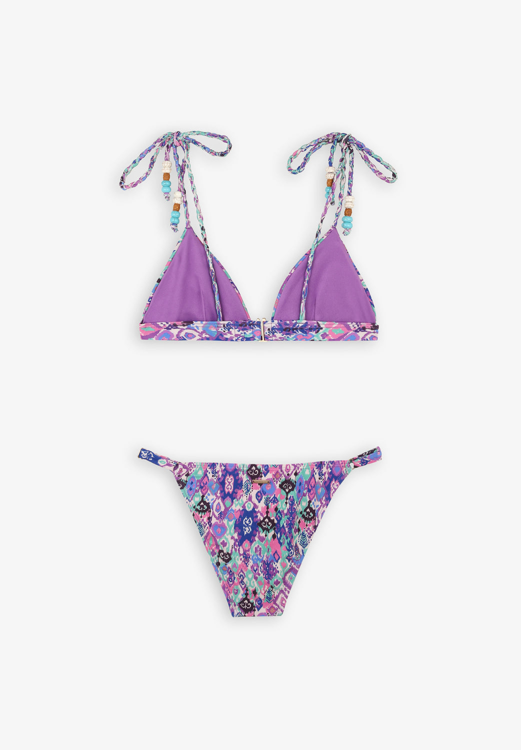 - Parte de arriba con cierre trasero con broche y tirantes finos delazada terminados en abalorios