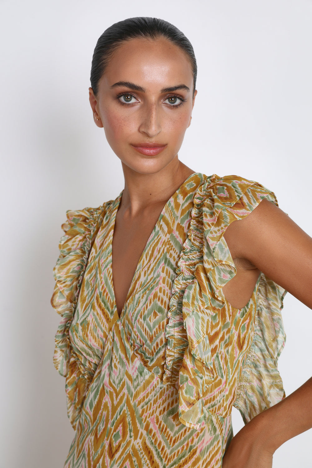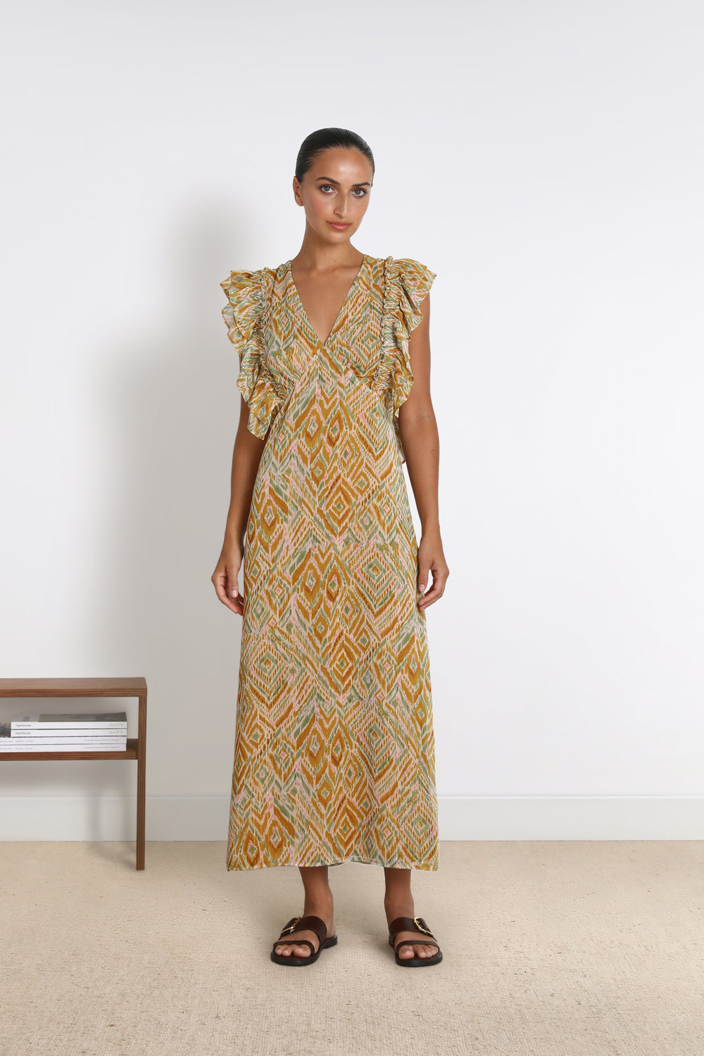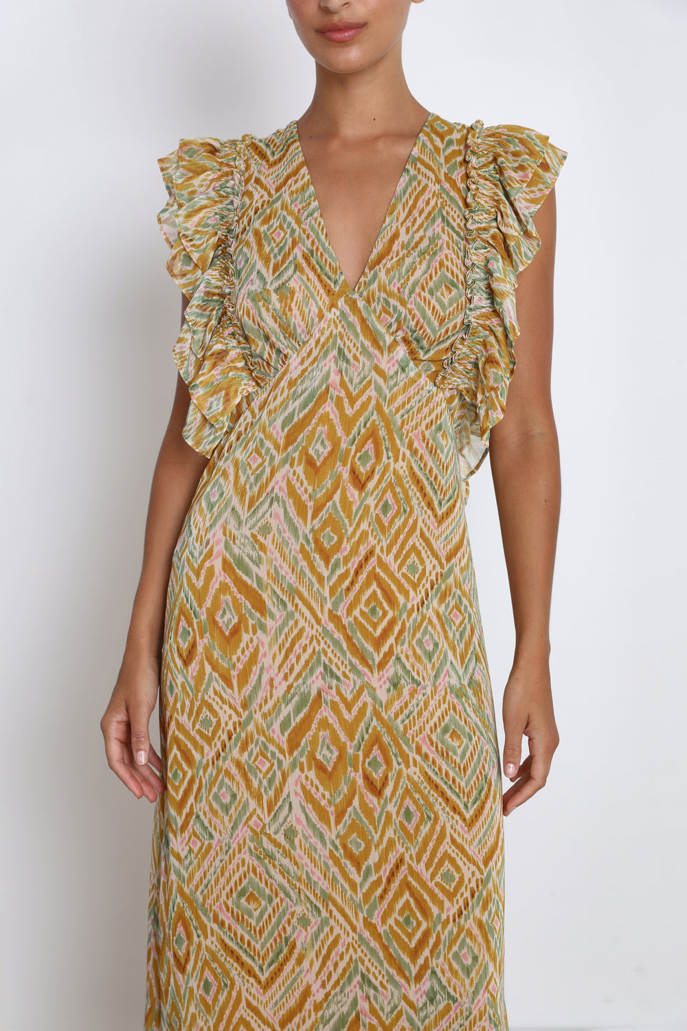 VESTIDO MIDI MANGA VOLANTES