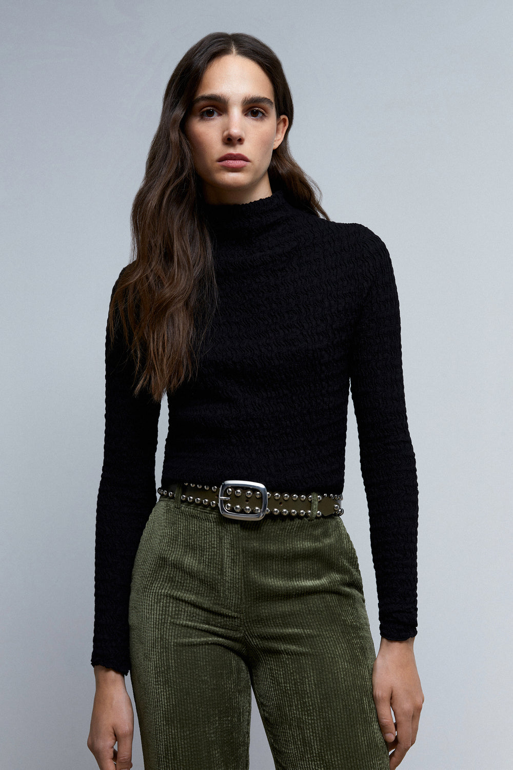 - Confeccionada en algodón y materiales reciclados ligeramente elástica