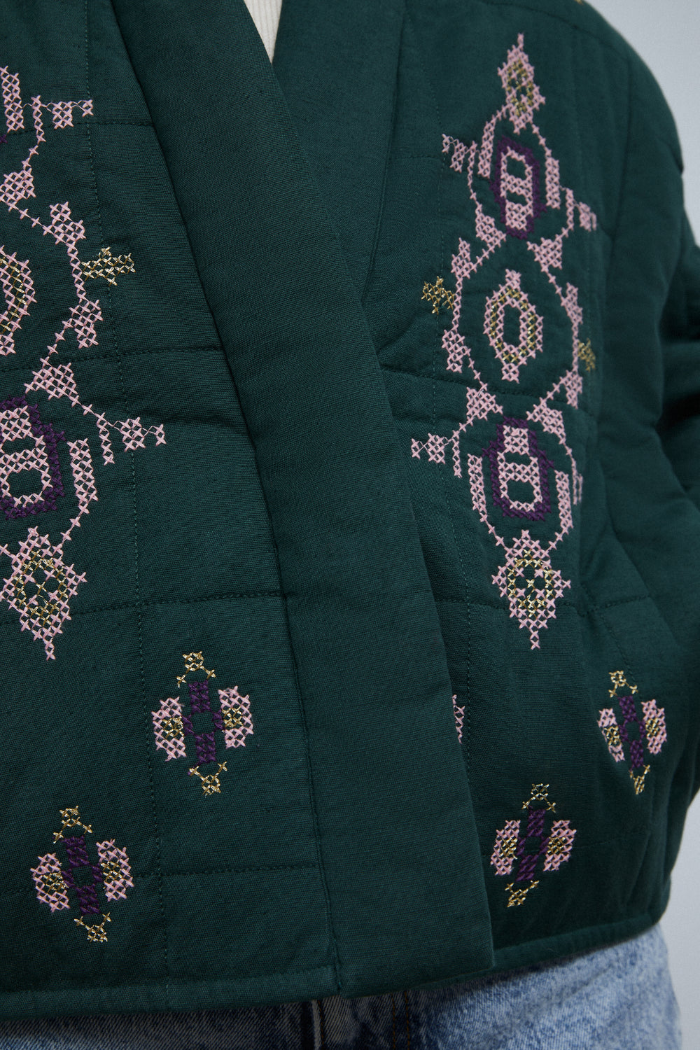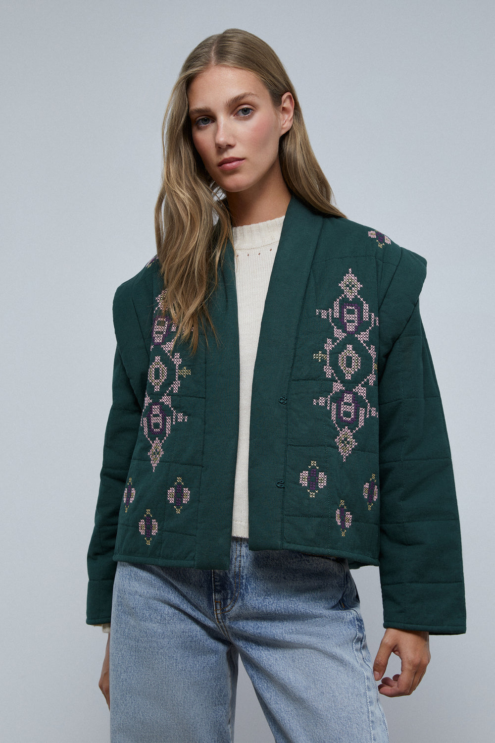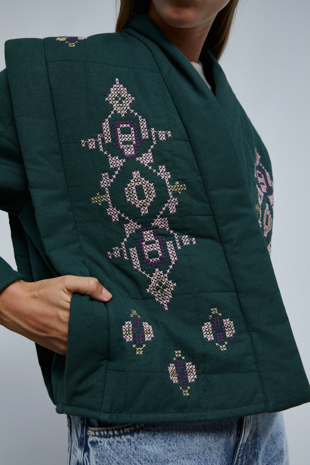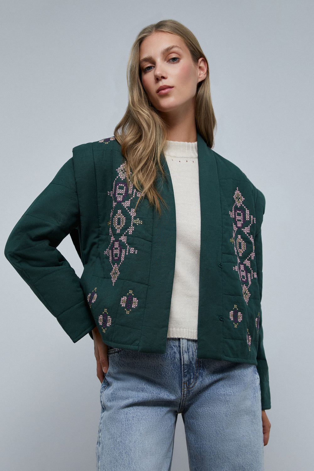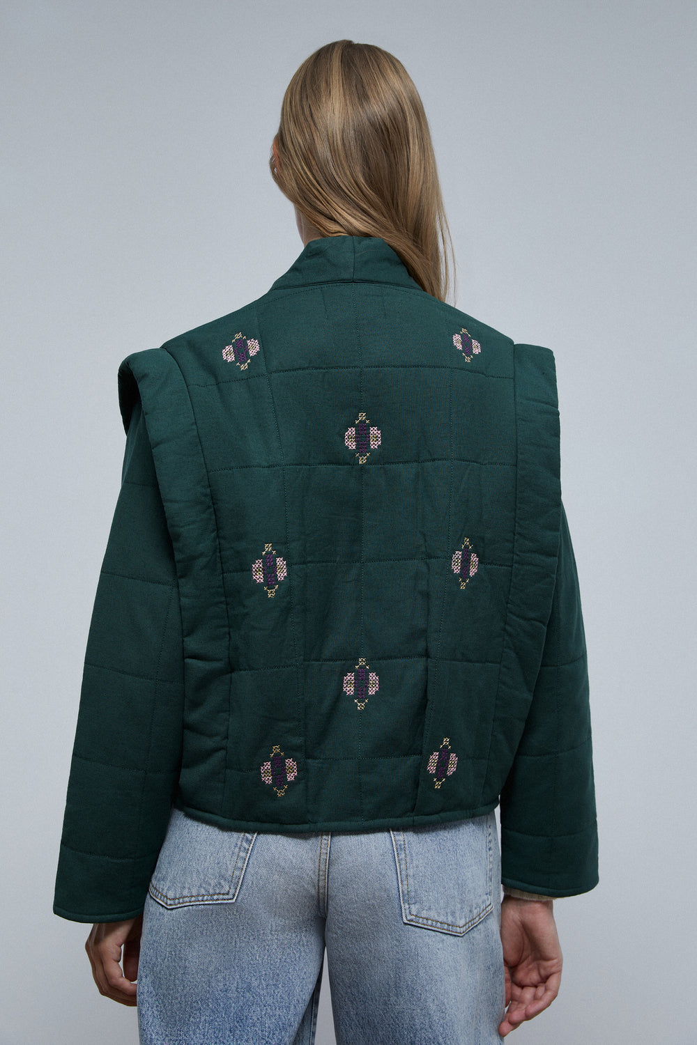 Chaqueta guateada con detalles de bordados.