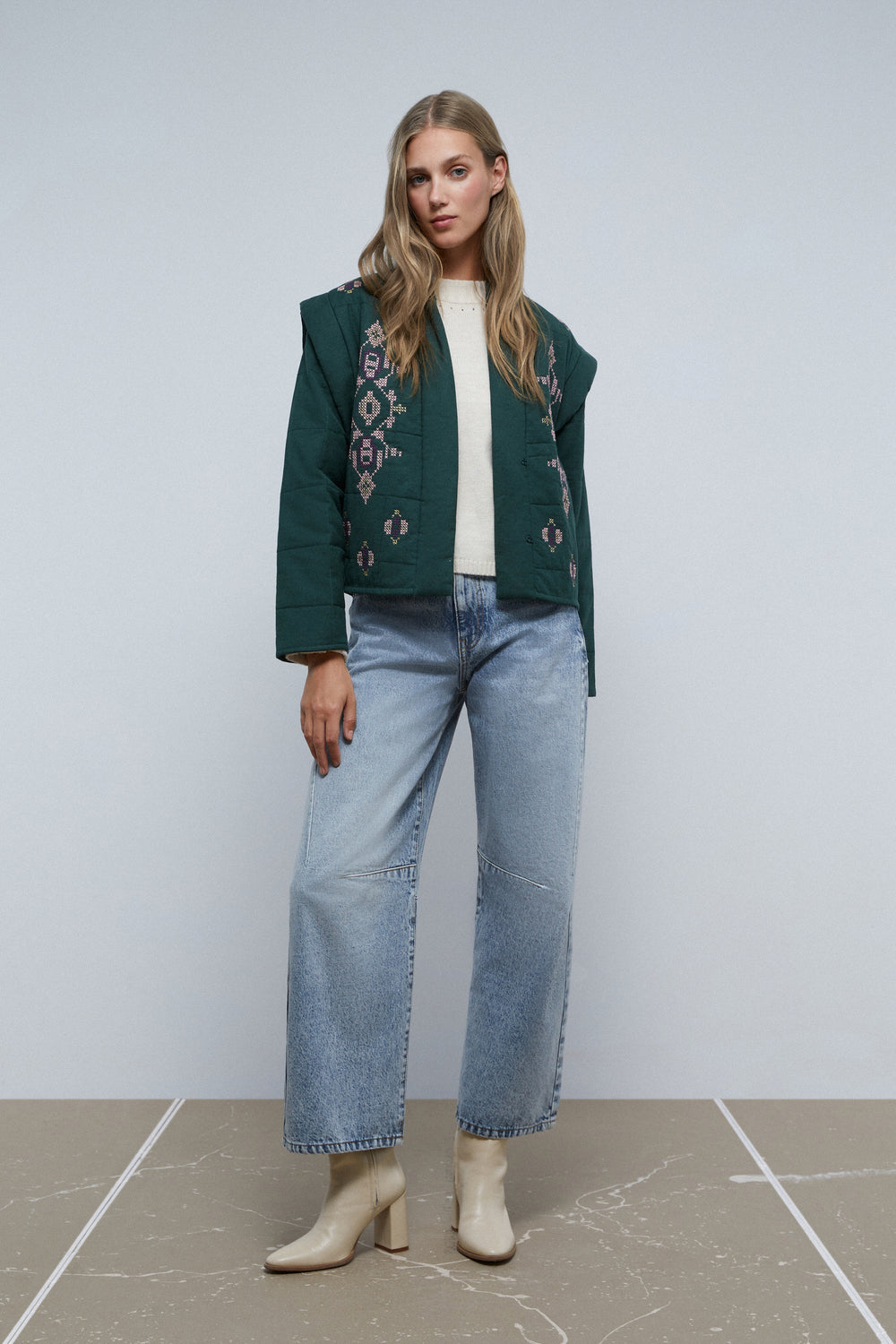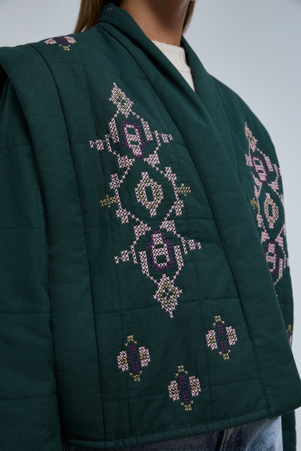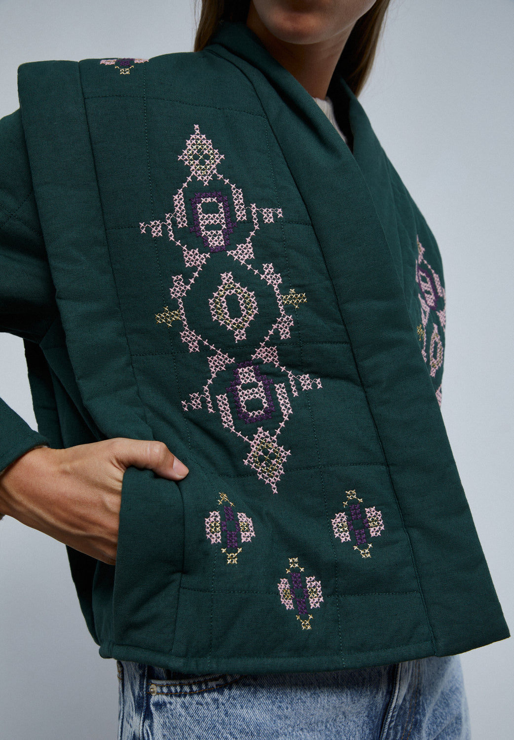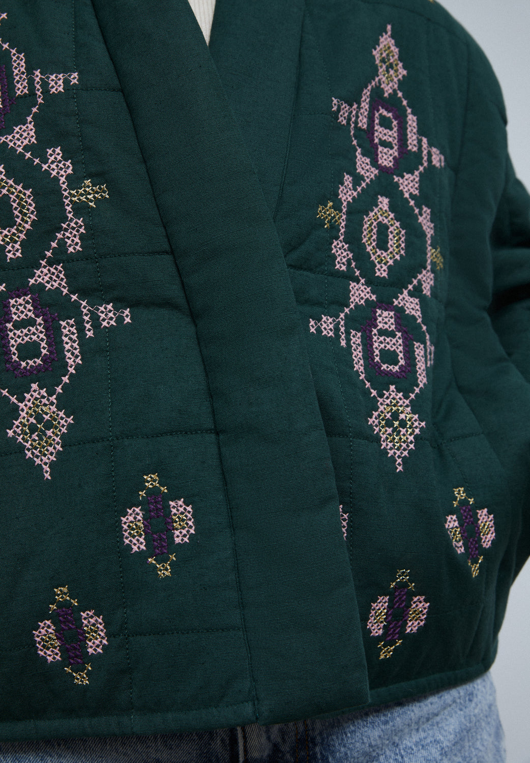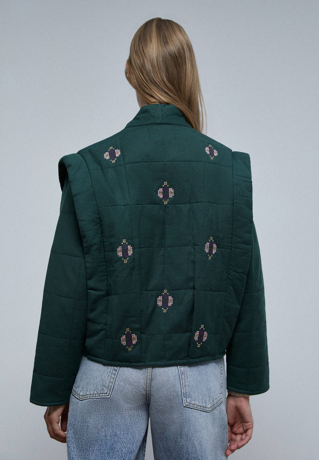 Chaqueta guateada con detalles de bordados.