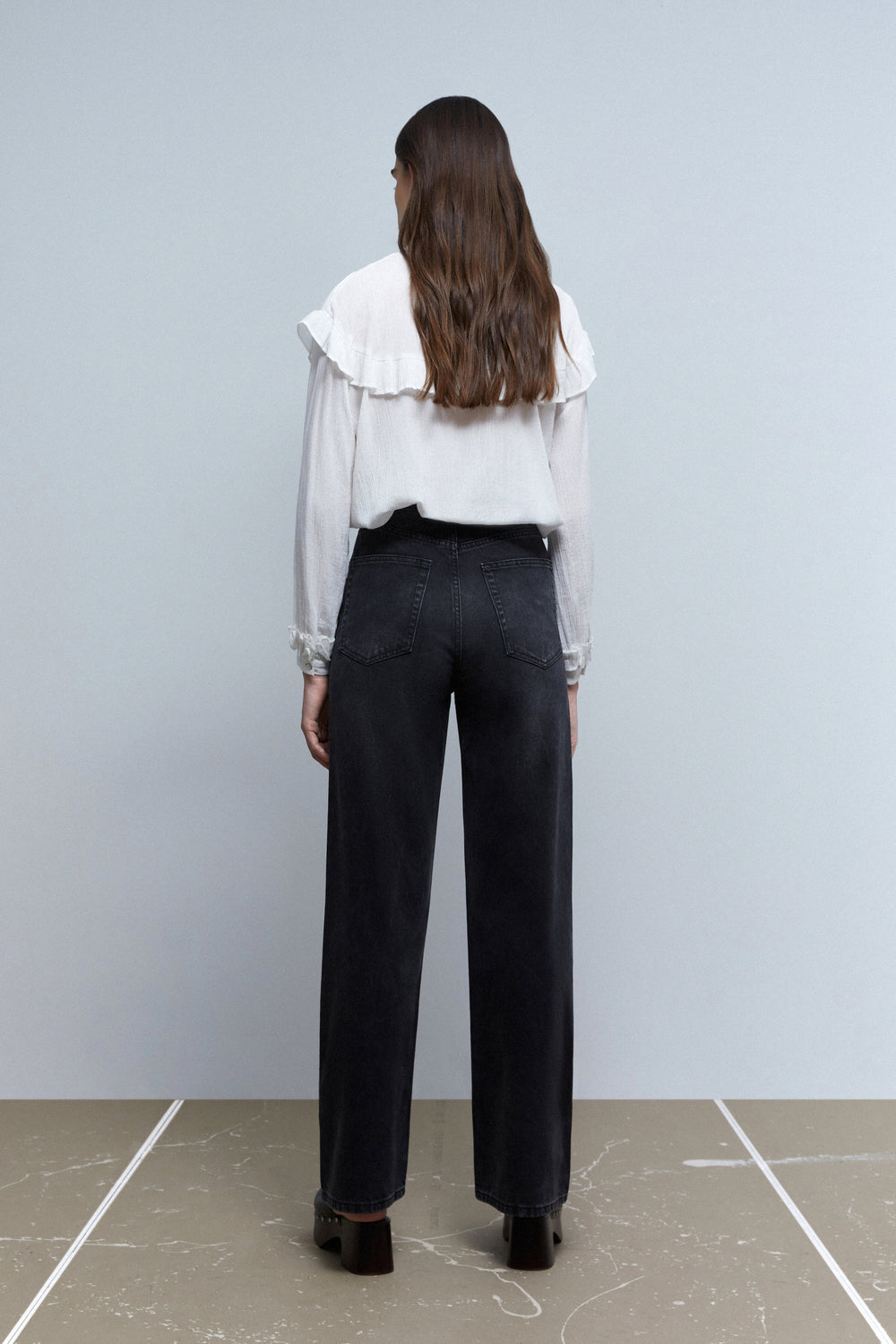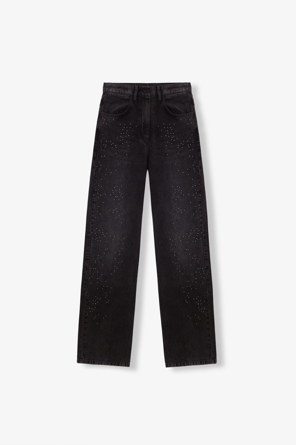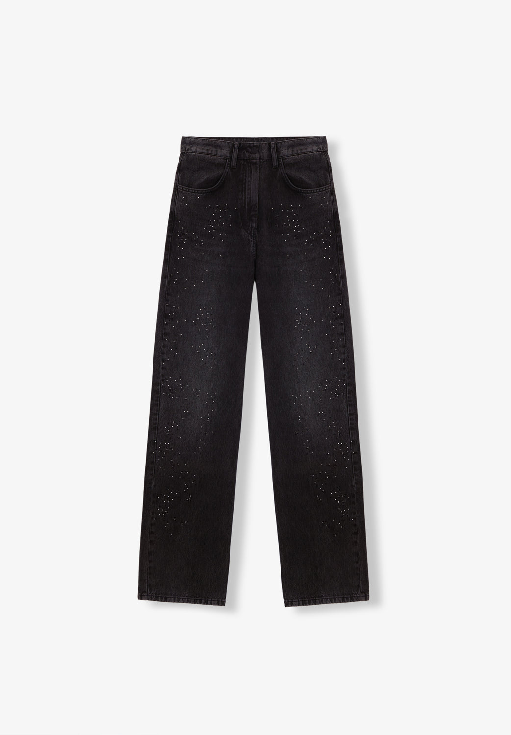 Jeans wide leg con ligeros detalles de aplicación de brillos en parte frontal