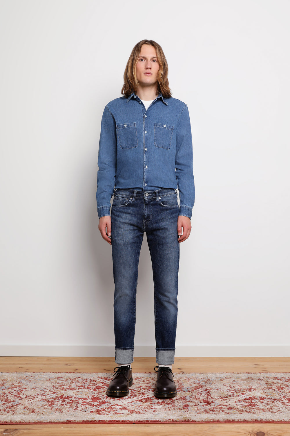 Camisa vaquera Samsoe confeccionada en tejido 100% algodón con aspecto lavado.