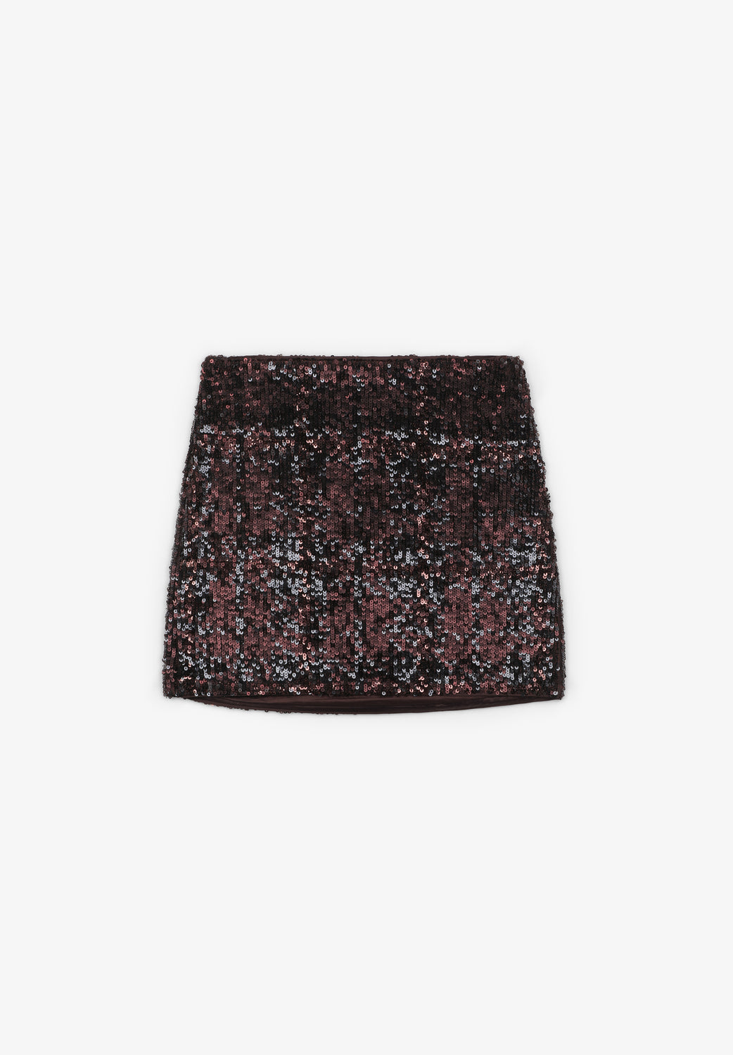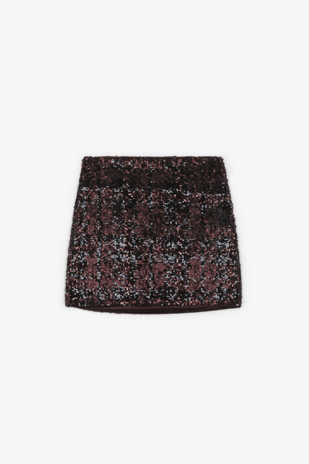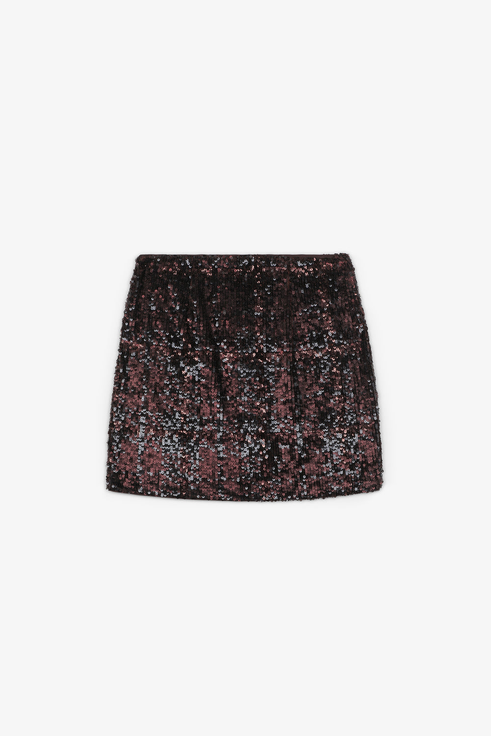 Falda corta Samsoe confeccionada en tejido de lentejuelas 100% poliéster.