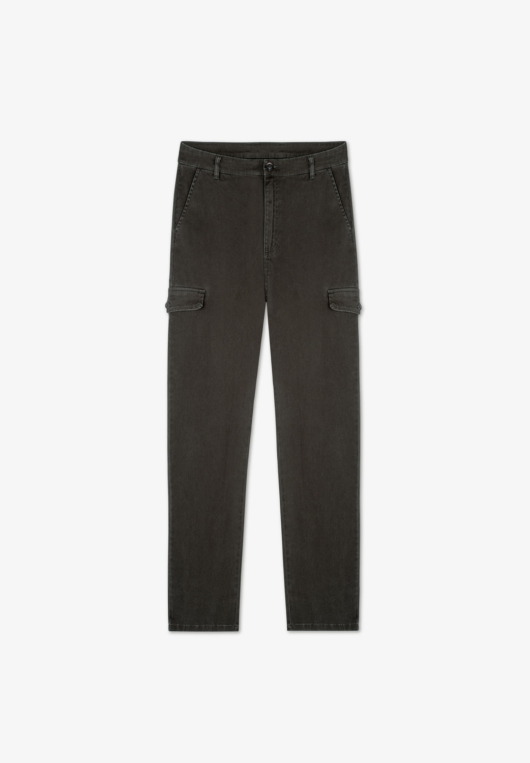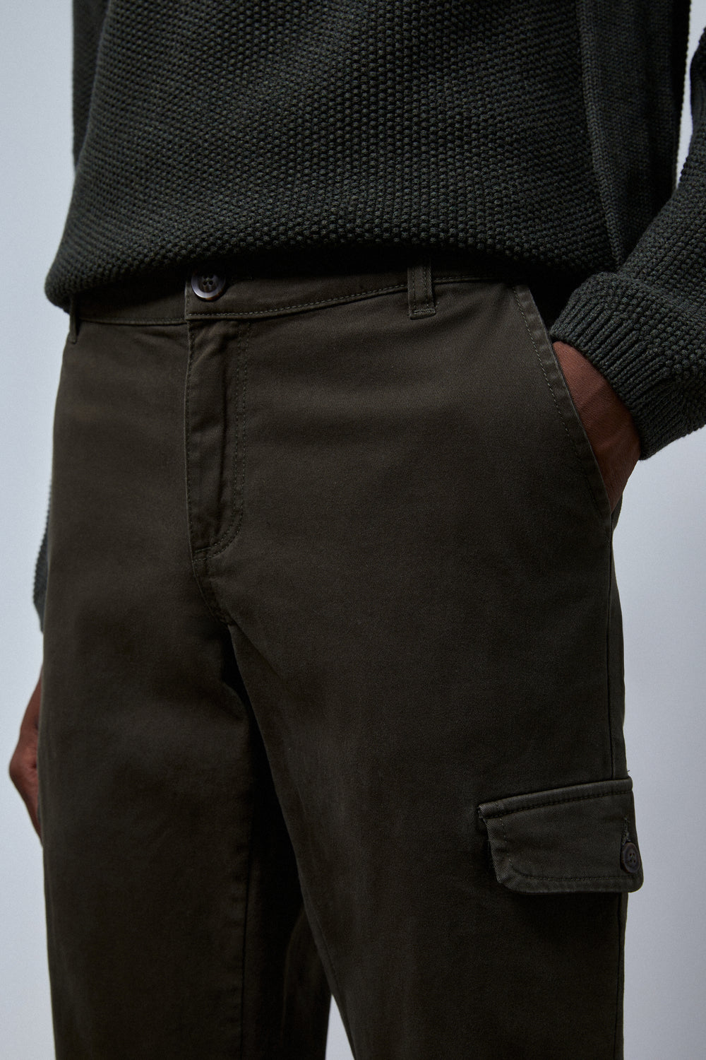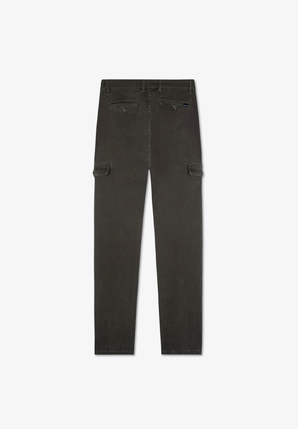 - Bolsillos laterales con solapa y bolsillos traseros insertados