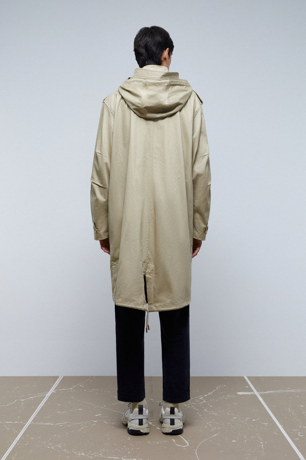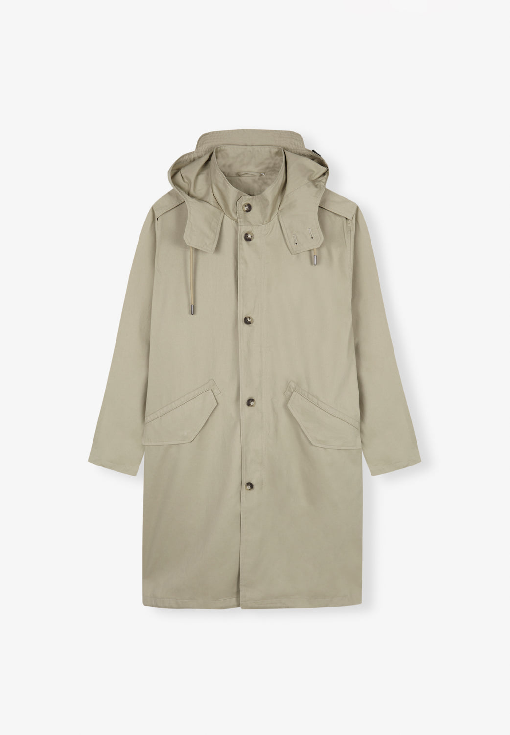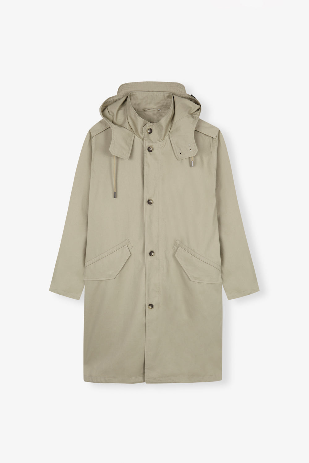 Trench con capucha con visera.