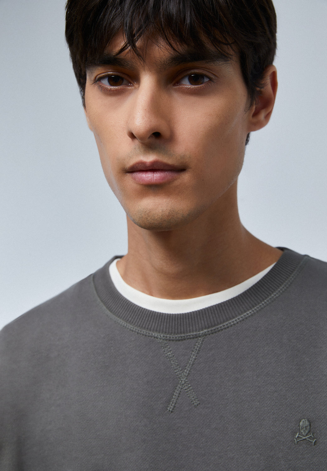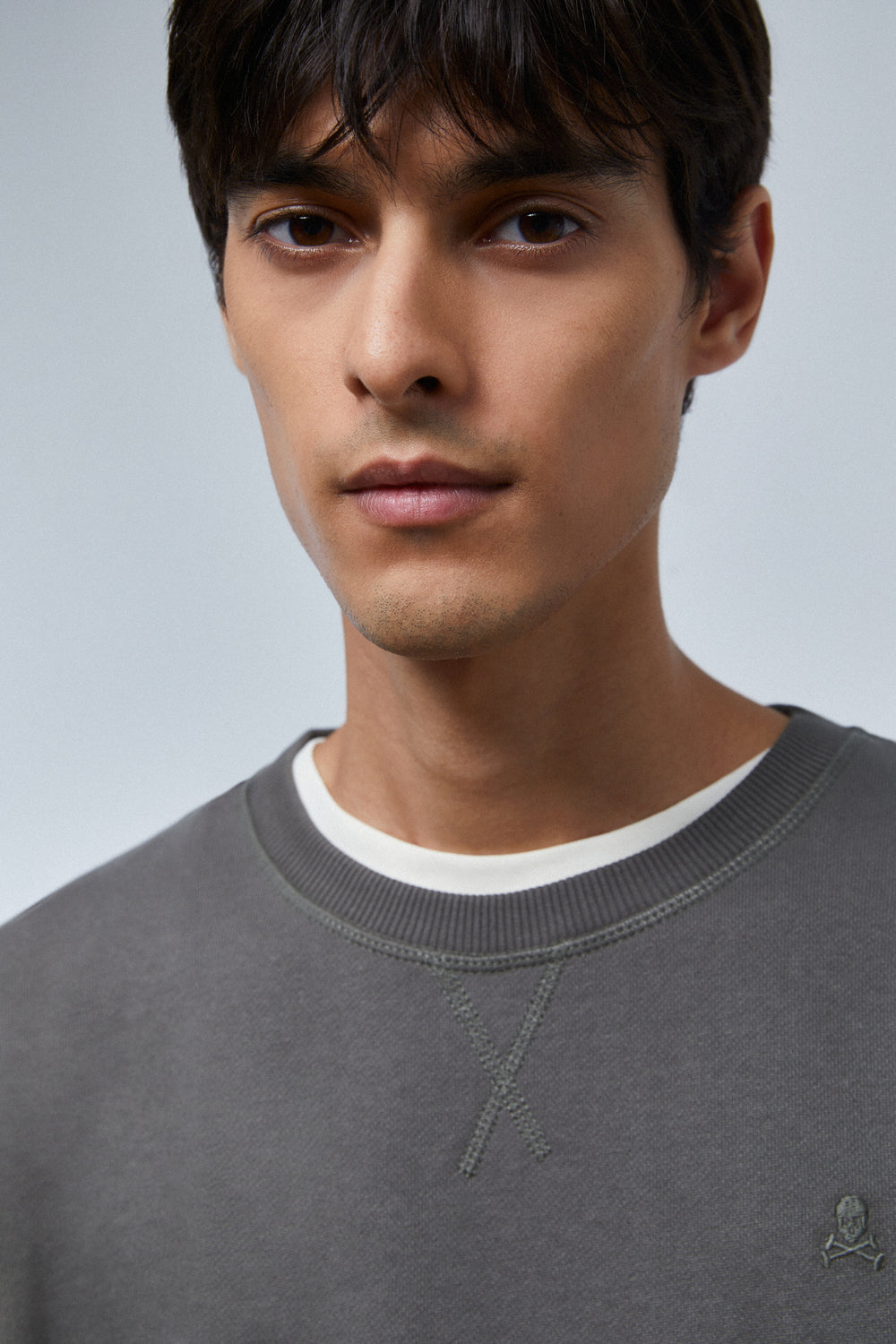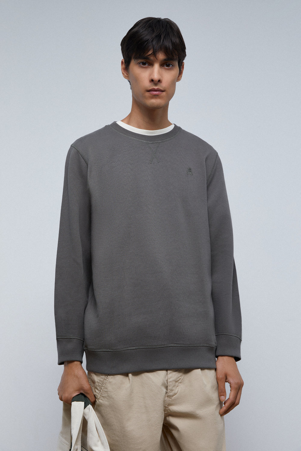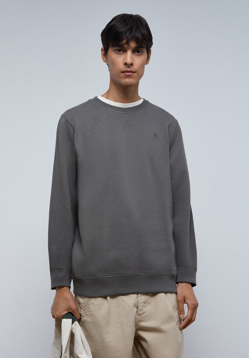 Sudadera básica con calavera bordada en el pecho.