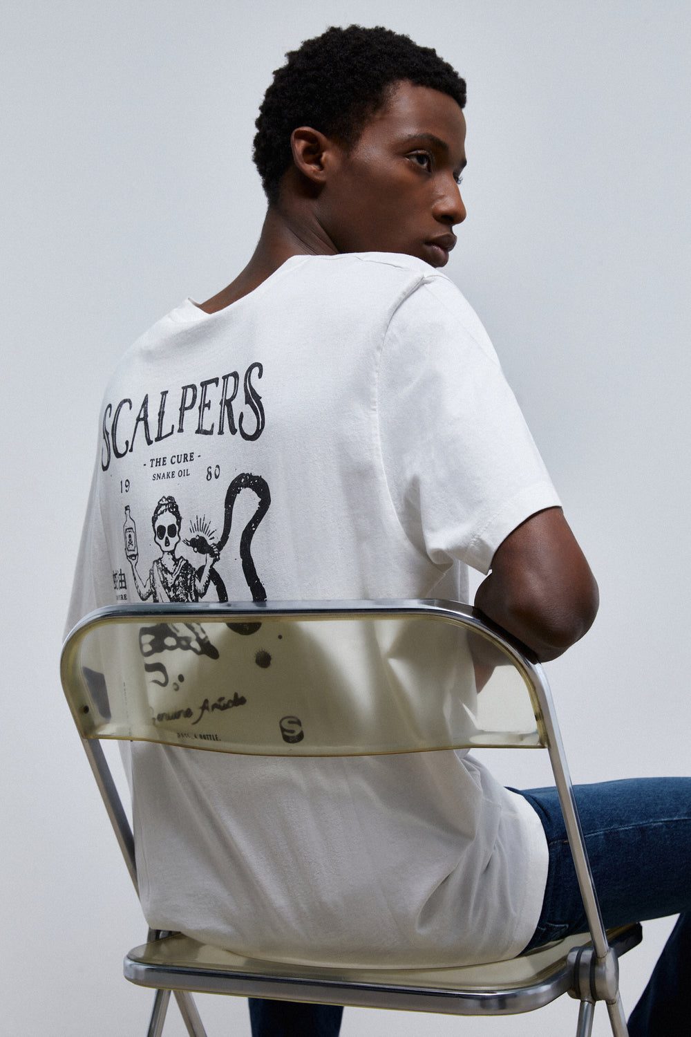 Camiseta lavada con print trasero y en pecho.
