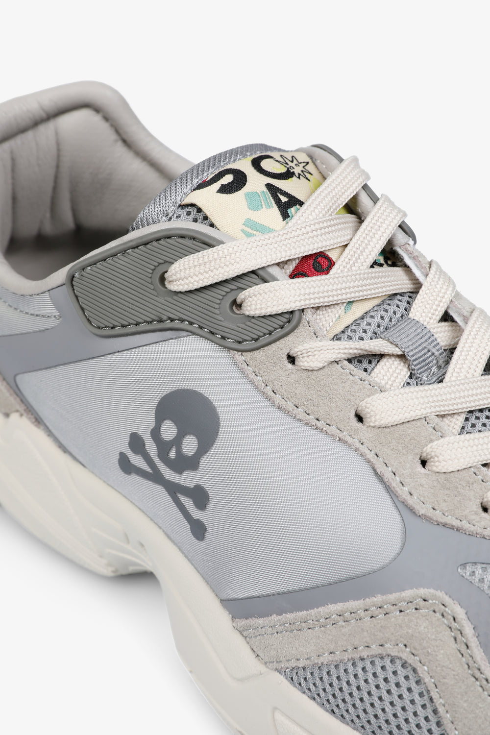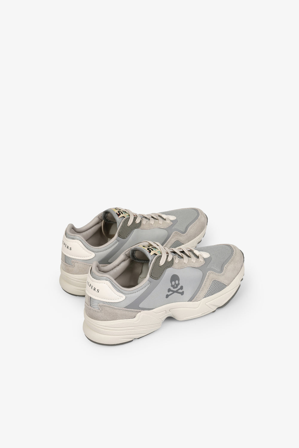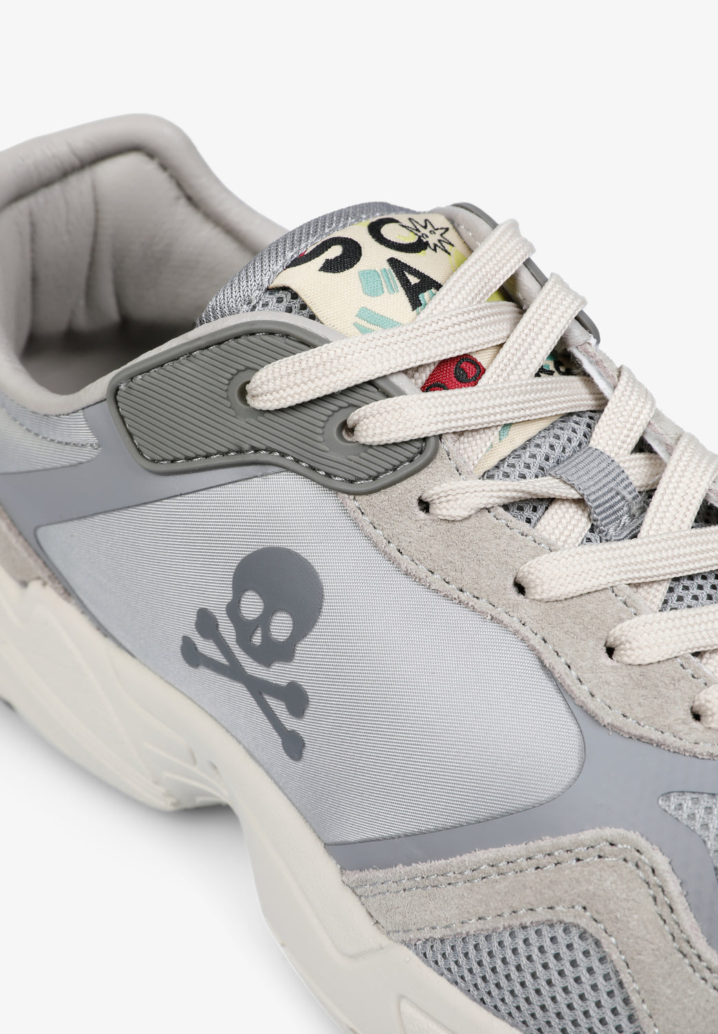 - Detalle de print lateral de calavera a contraste y logo trasero