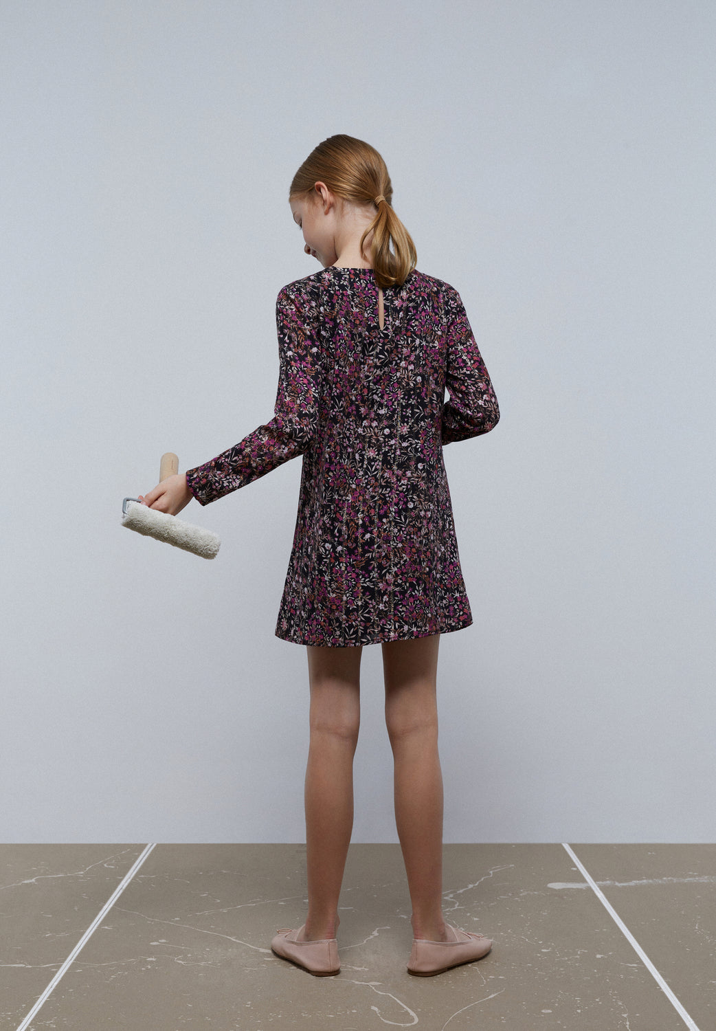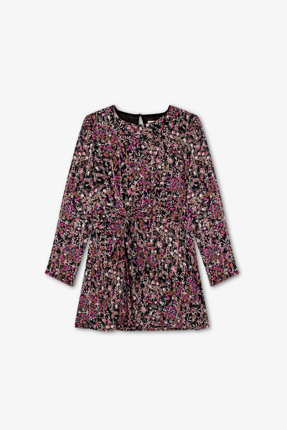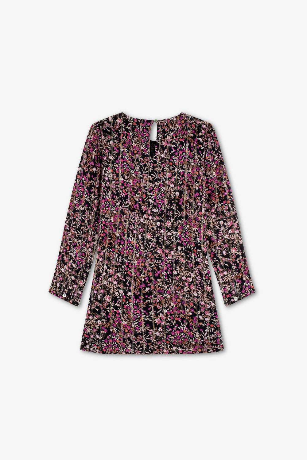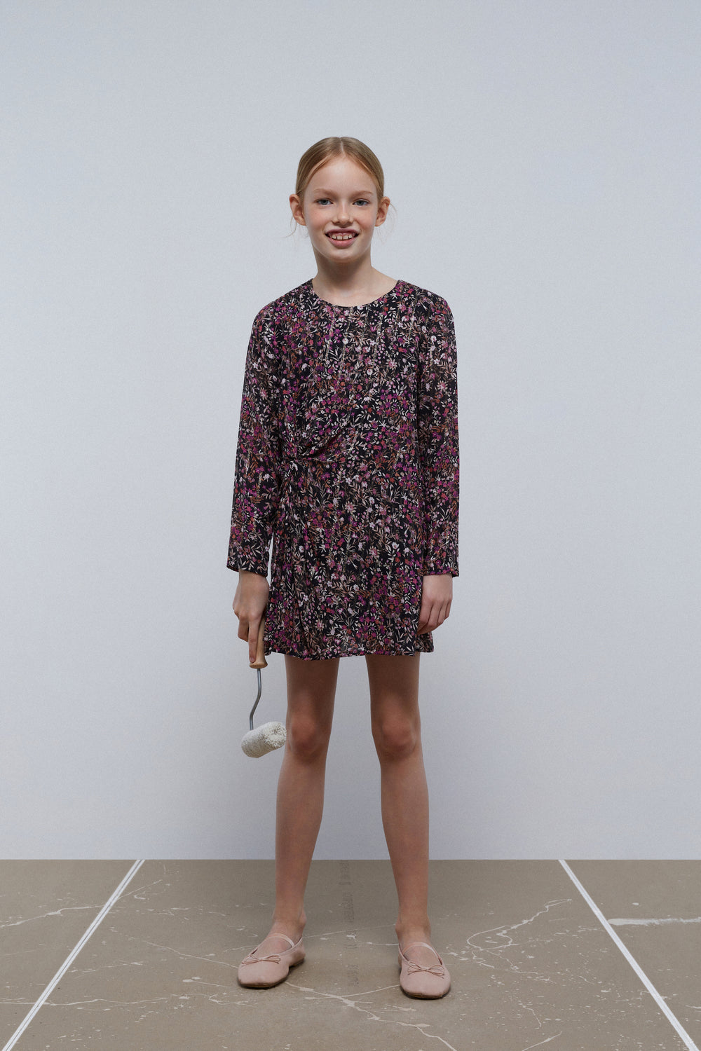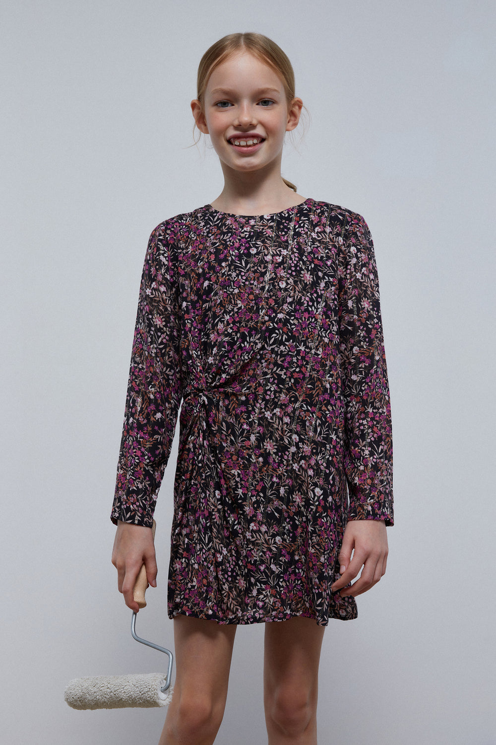 Vestido mini con estampado de flores y nudo lateral en cintura