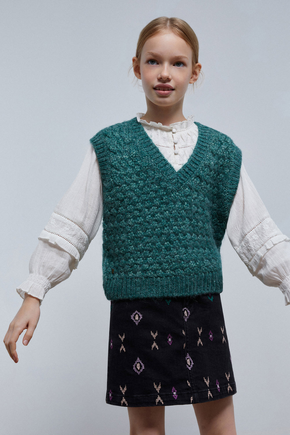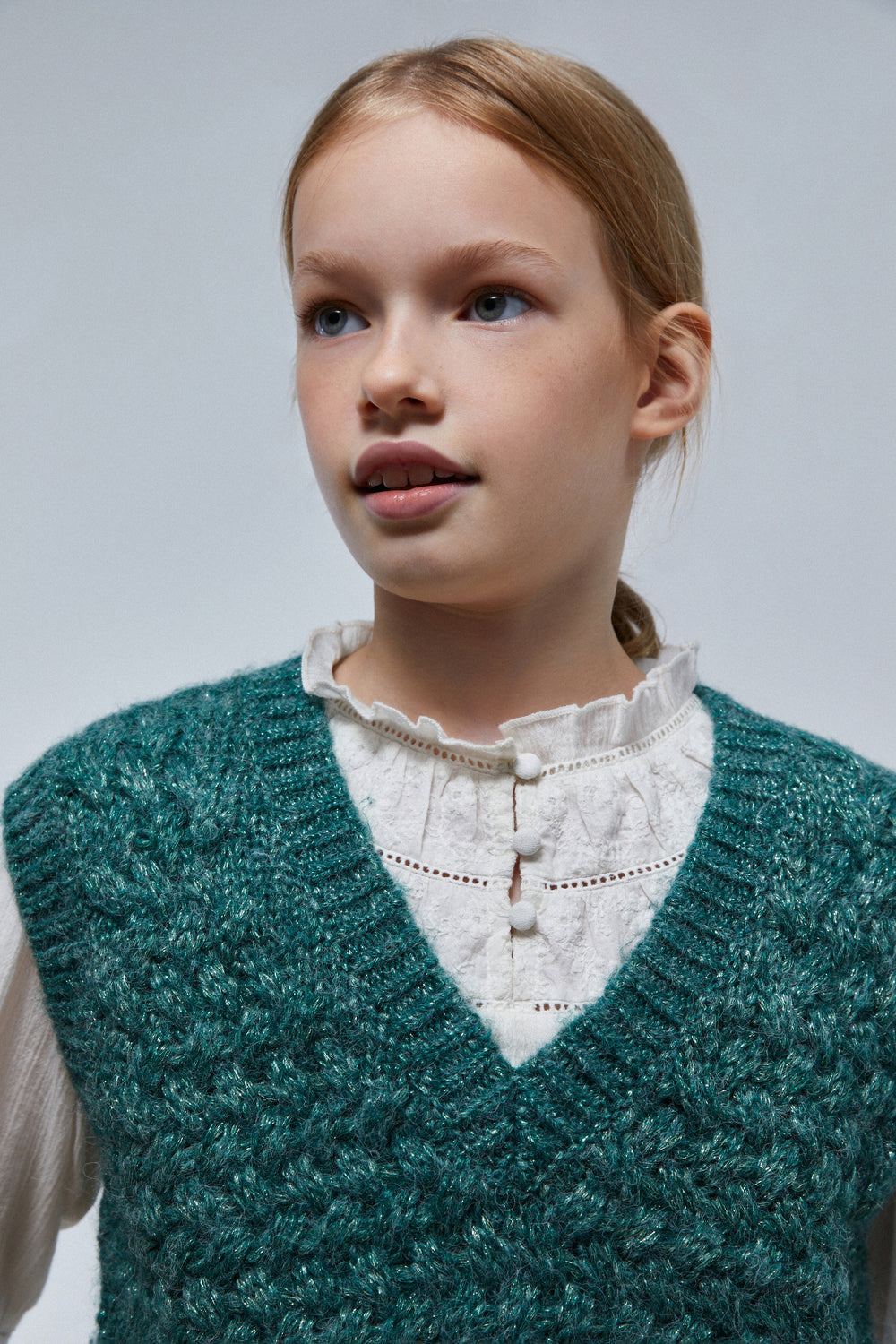 - Confeccionado en mezcla de fibras con detalle en hilatura metalizada