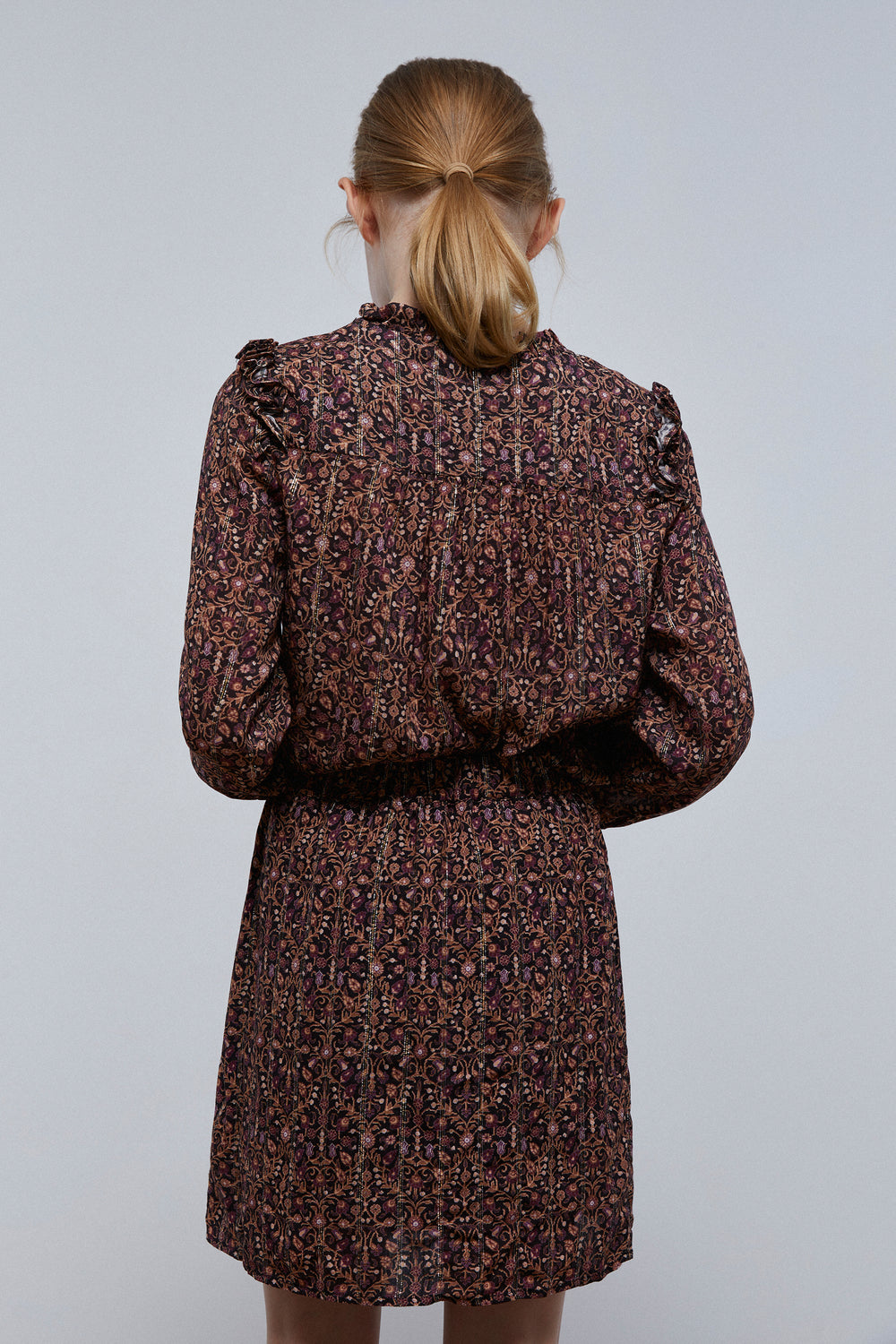 - Confeccionada en tejido fluido con detalles en lurex