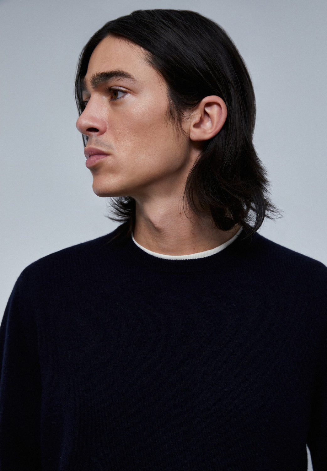 Jersey confeccionado en cachemira 100%. Corte Regular Fit. Cuello redondo. Manga larga.