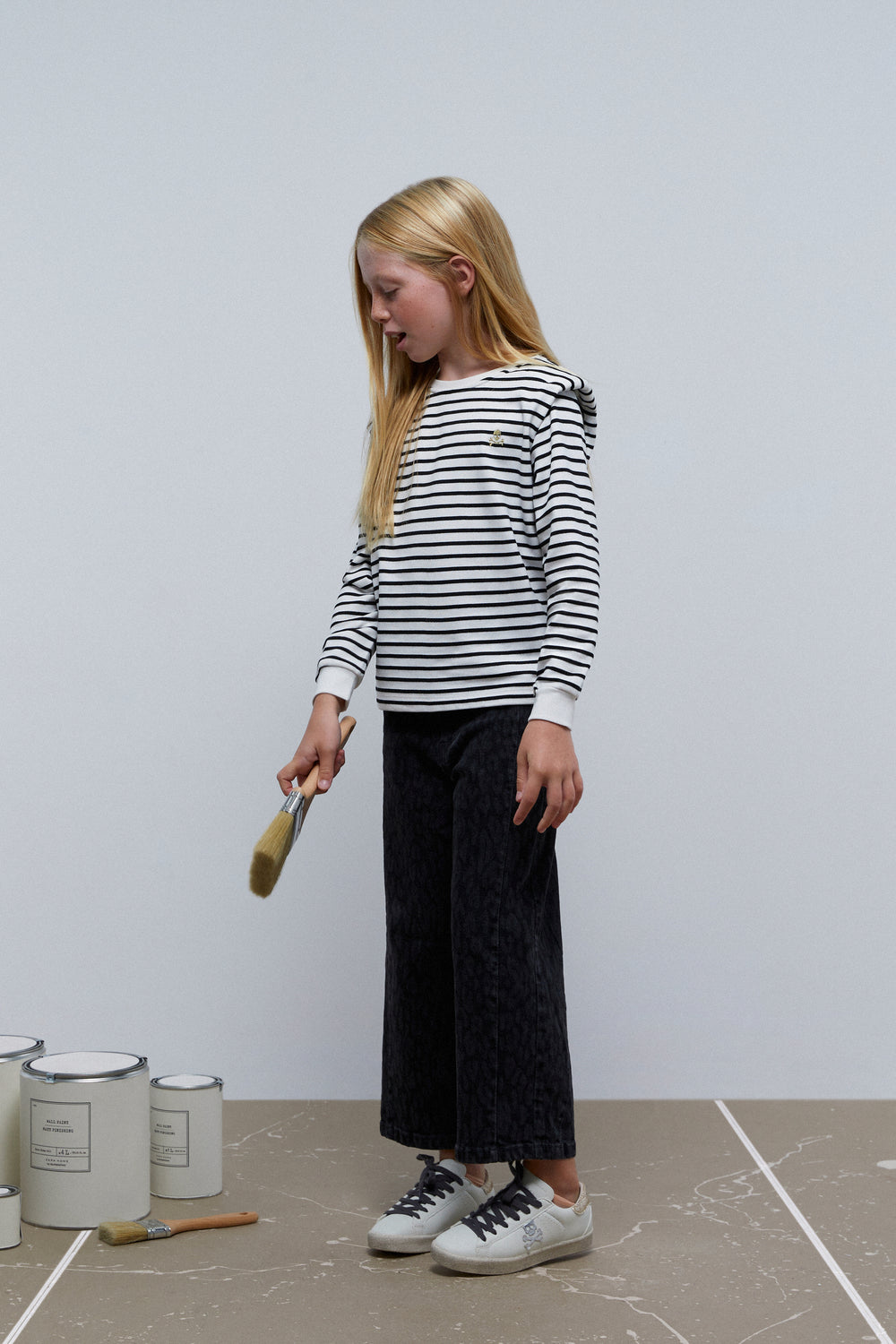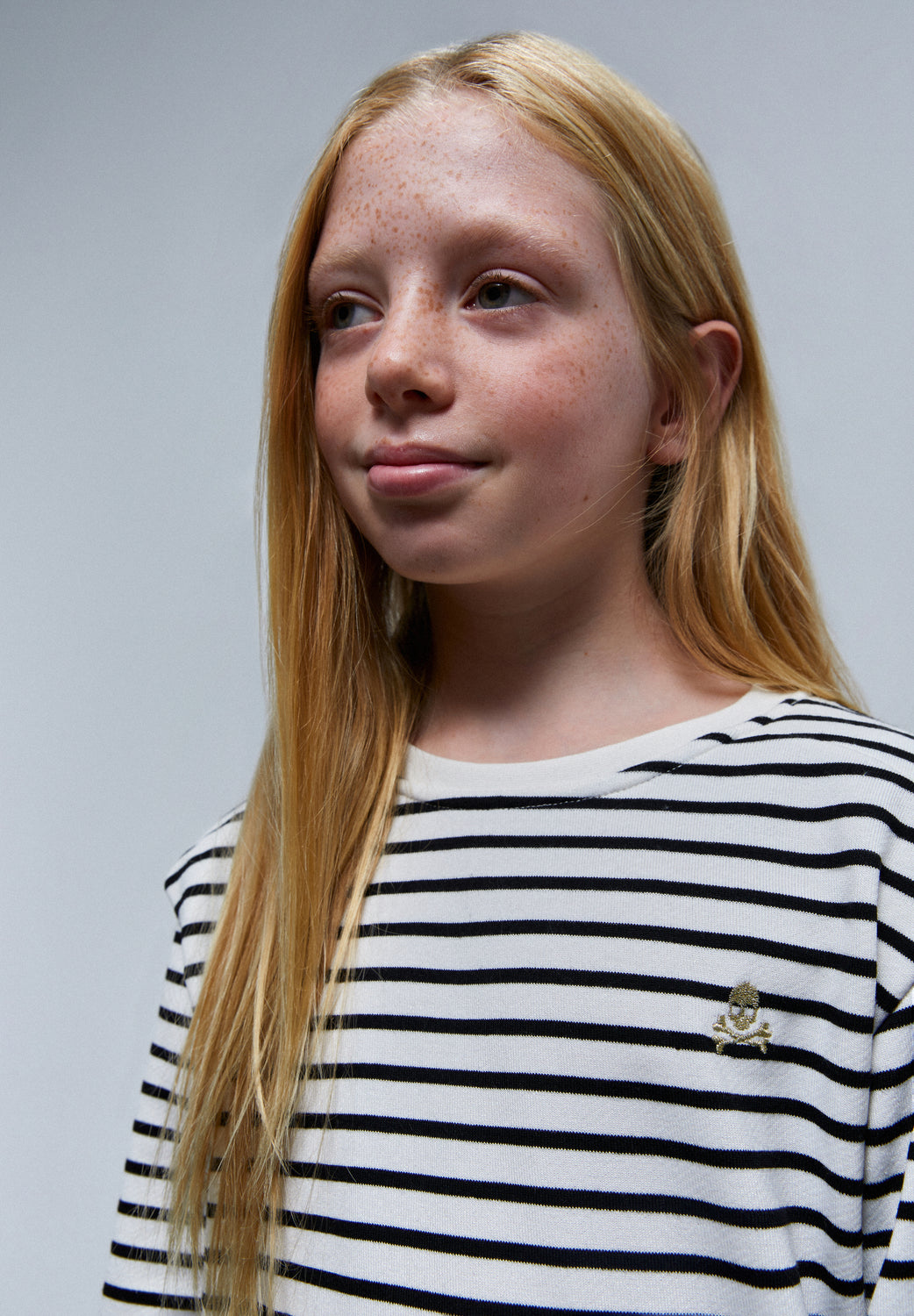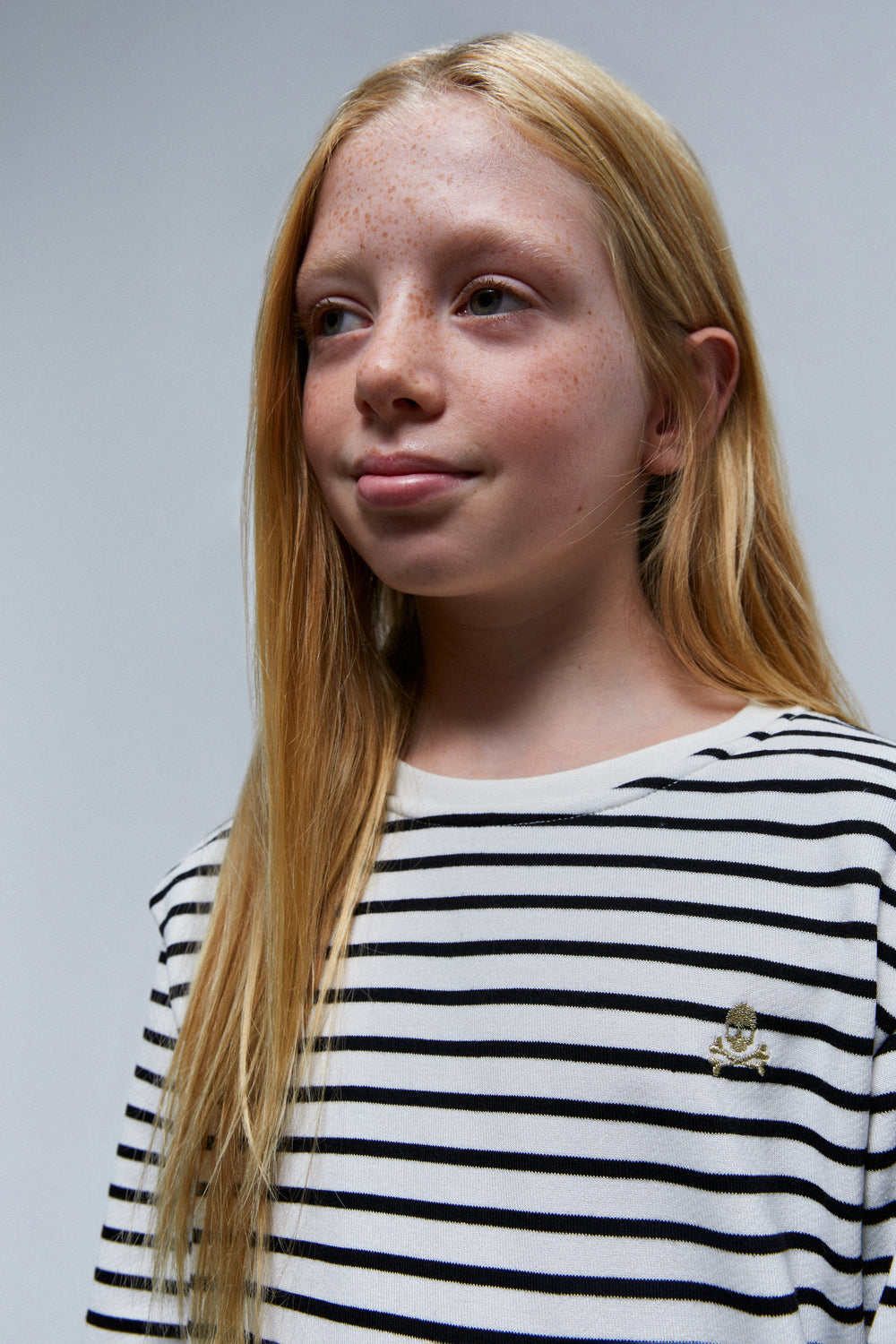 Sudadera de rayas con calavera bordada en el pecho a contraste