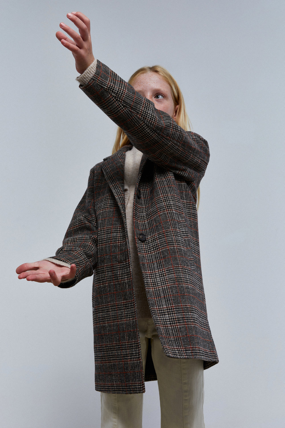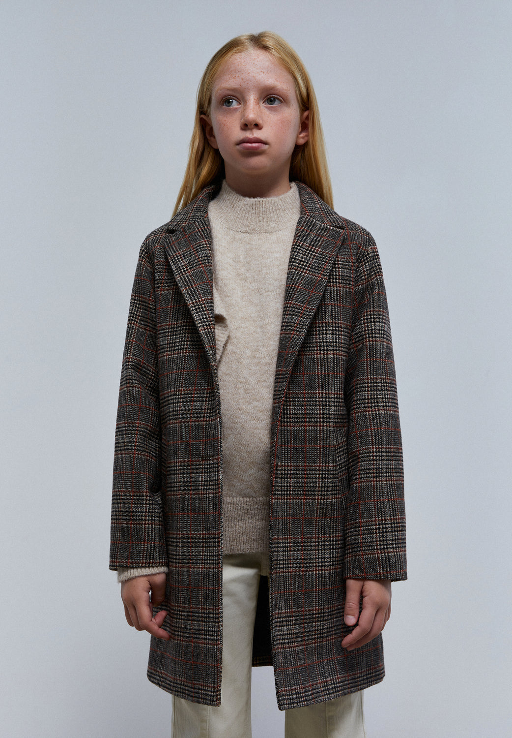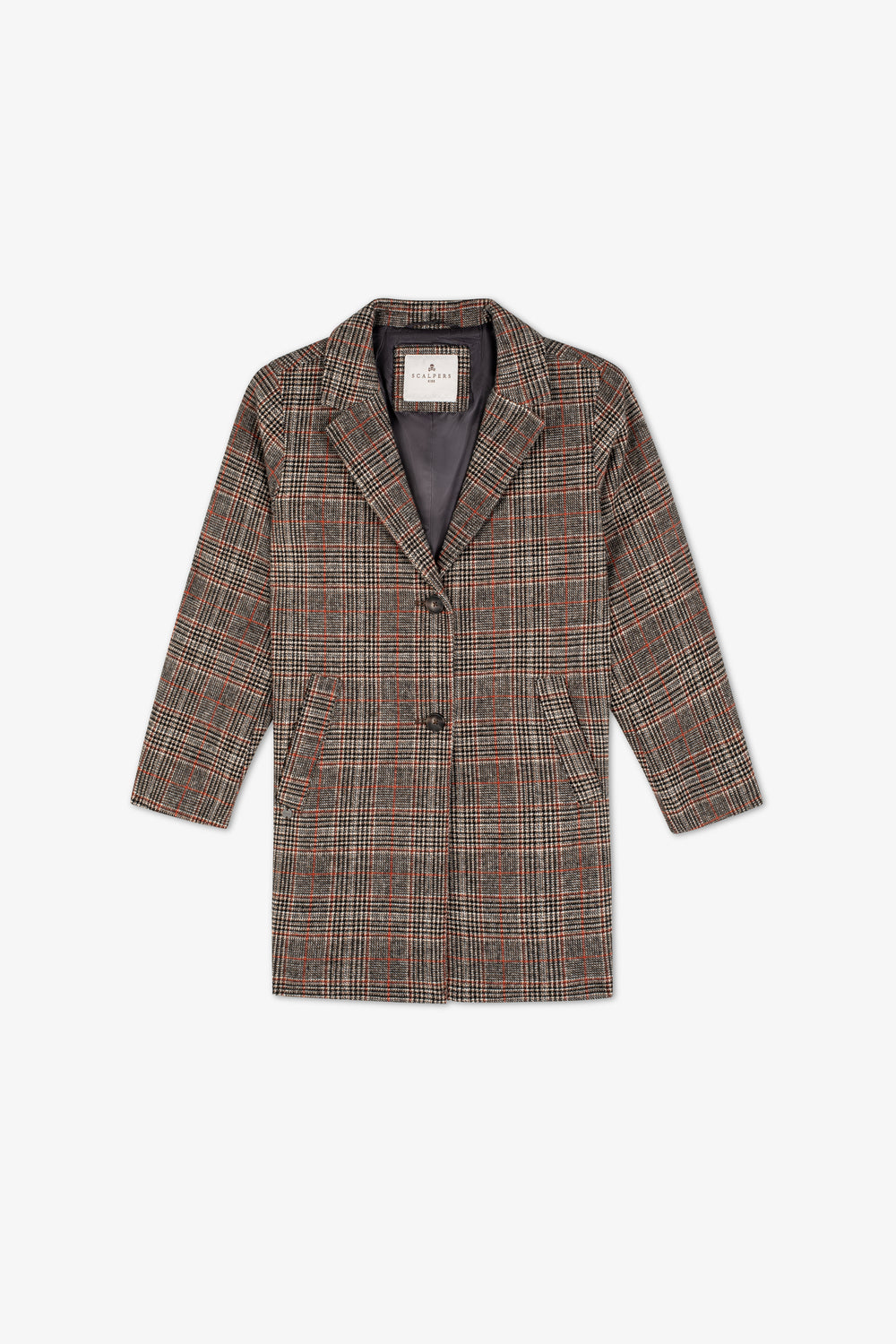 Abrigo de paño con estampado cuadro Príncipe de Gales