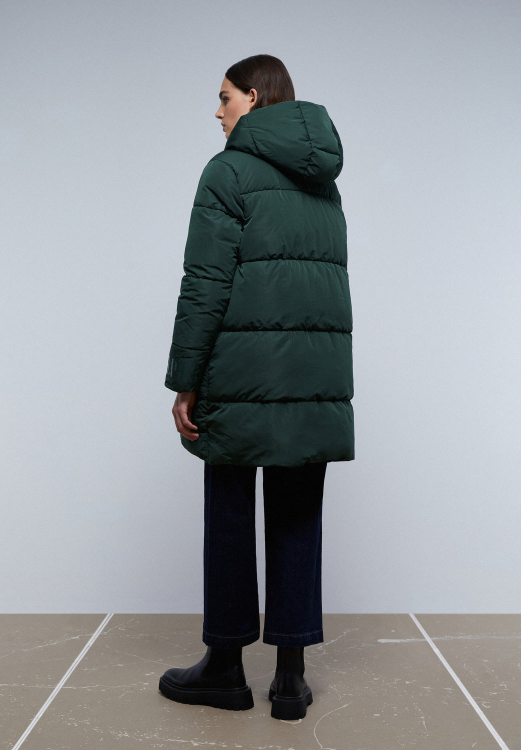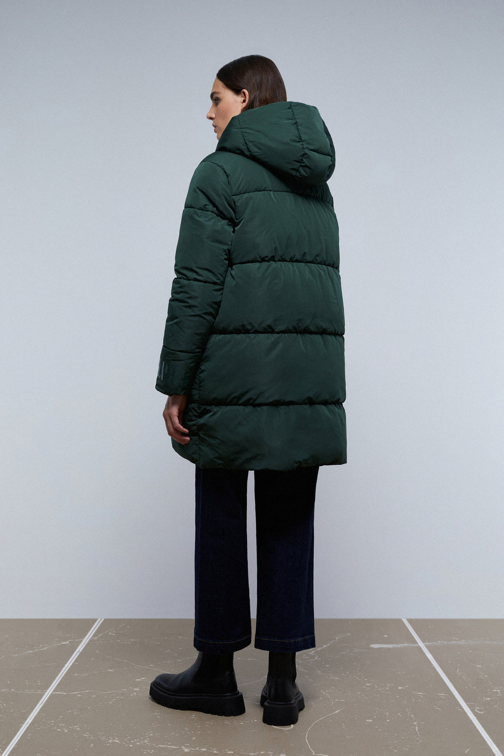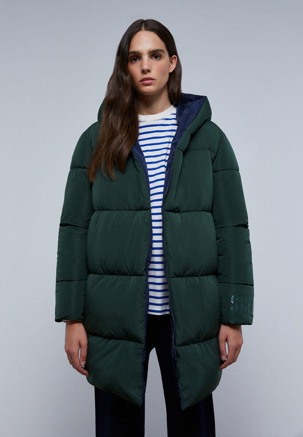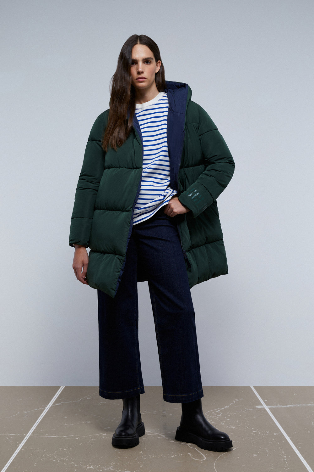 Abrigo largo acolchado reversible.
