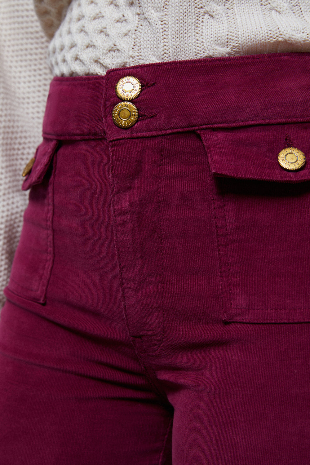 Pantalón de pana con de talle de botones en dorado.