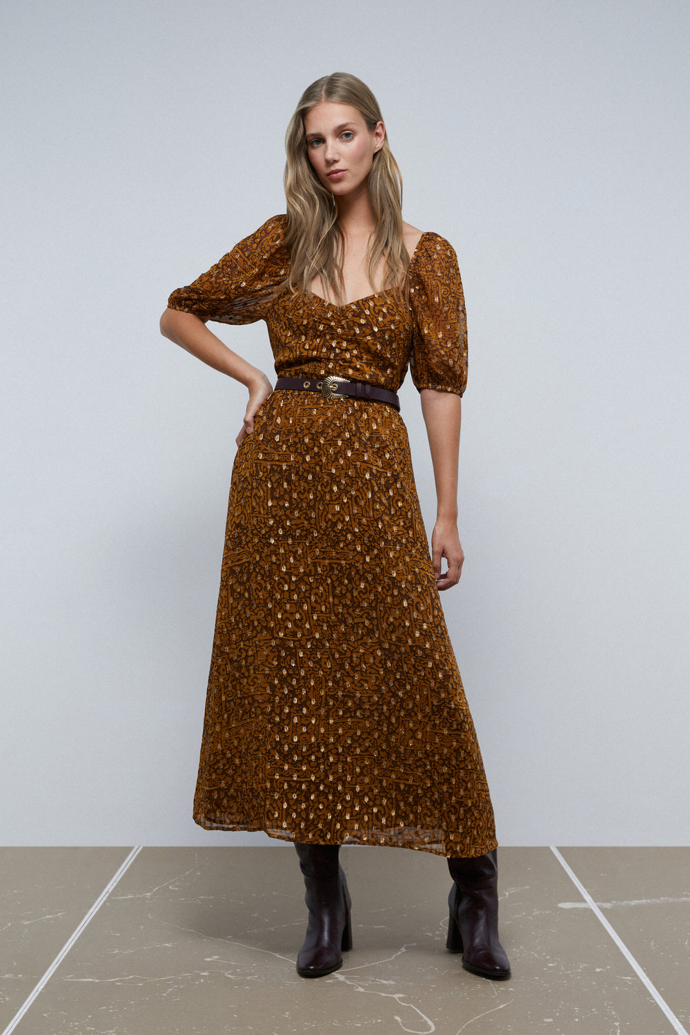 VESTIDO MIDI DETALLE FRUNCE PECHO