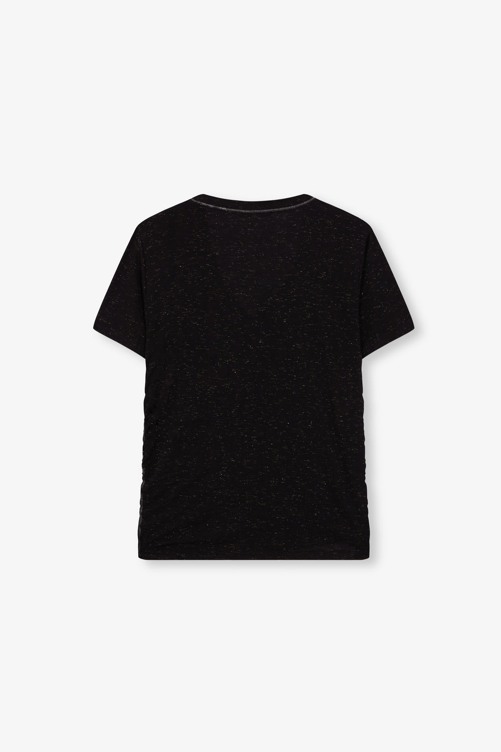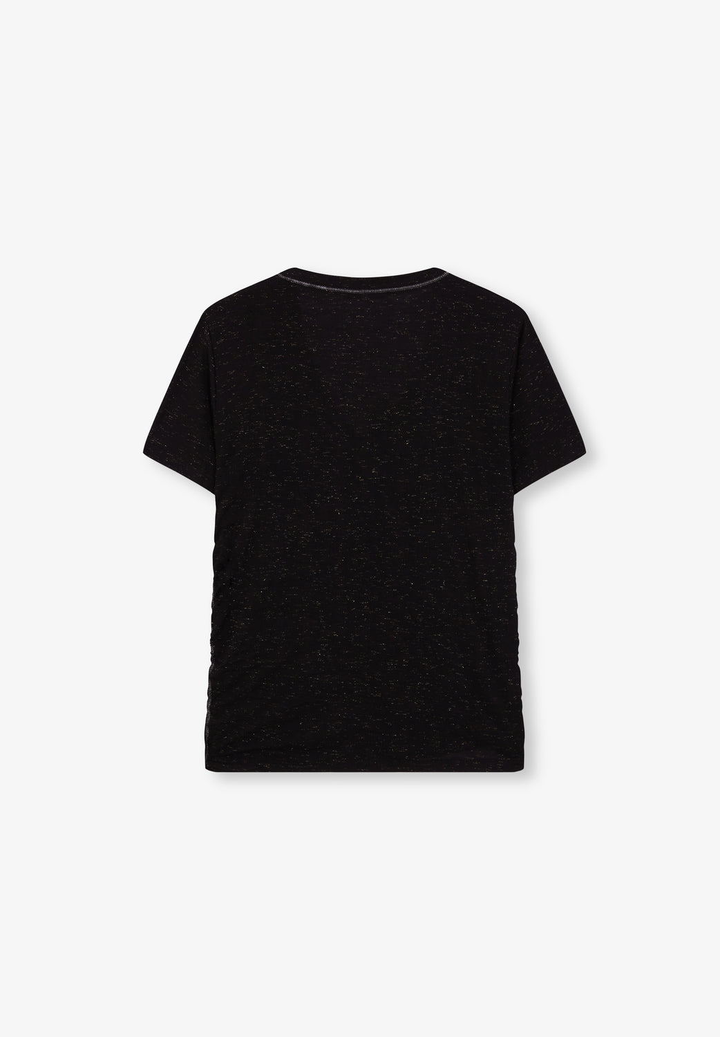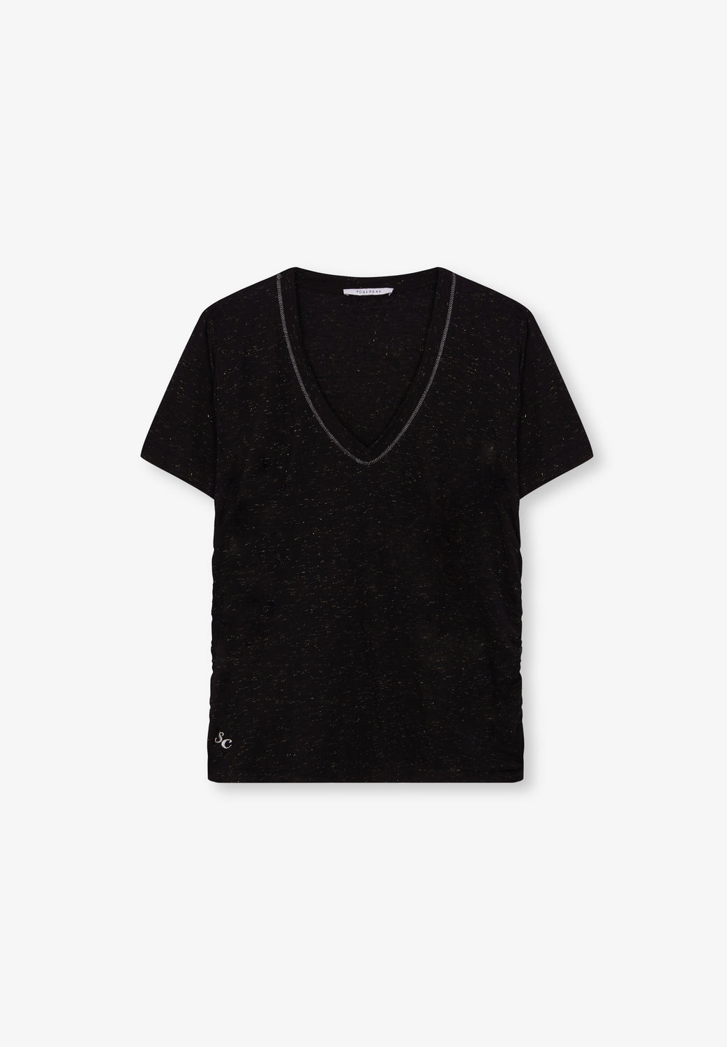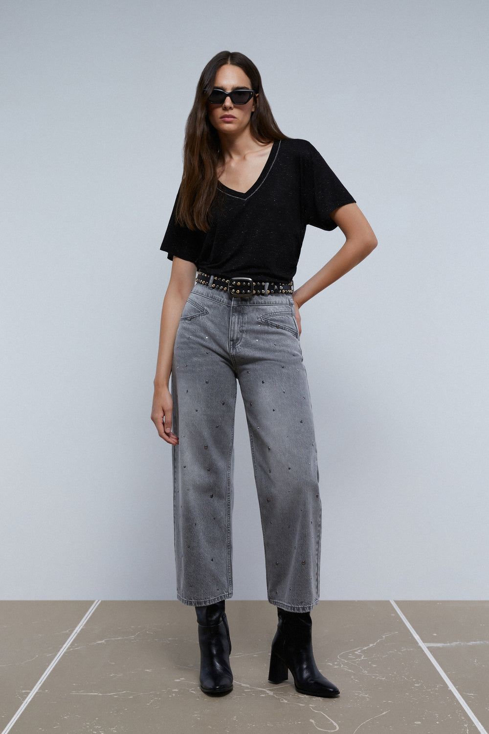 - Confeccionada en mezcla de fibras con detalle de hilatura metalizada