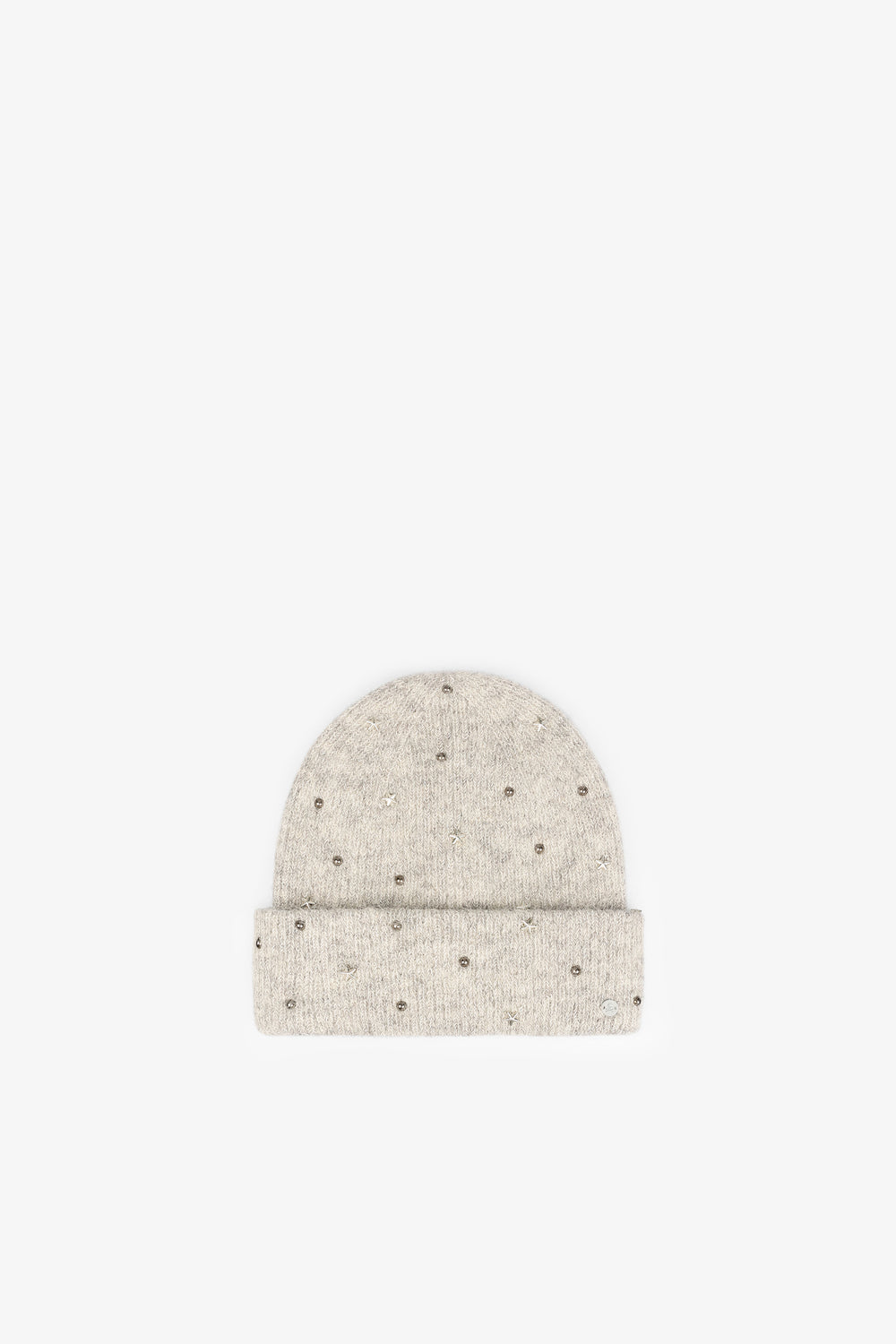 Gorro de punto con detalle de aplicación de abalorios.