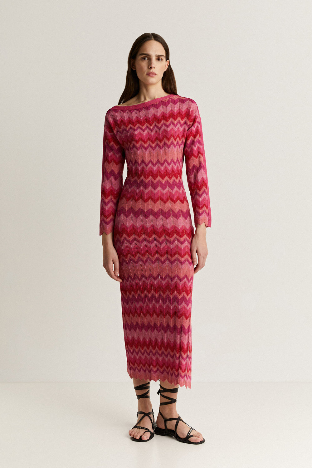 VESTIDO MIDI PUNTO ZIGZAG LUREX