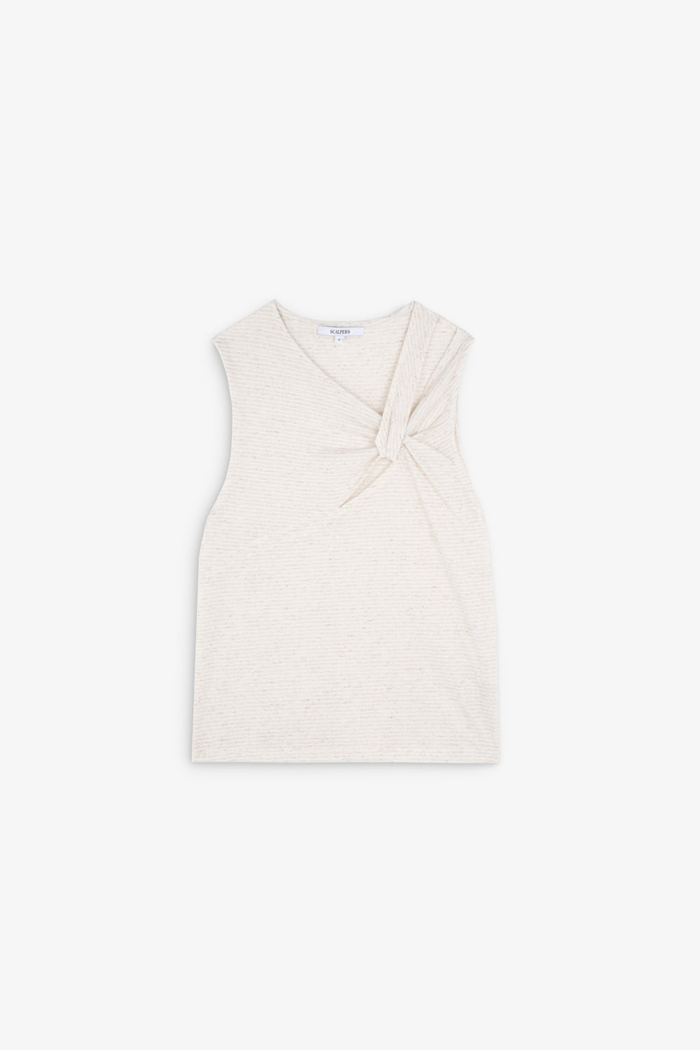 Camiseta en tejido rústico de rayas con detalle de nudo.