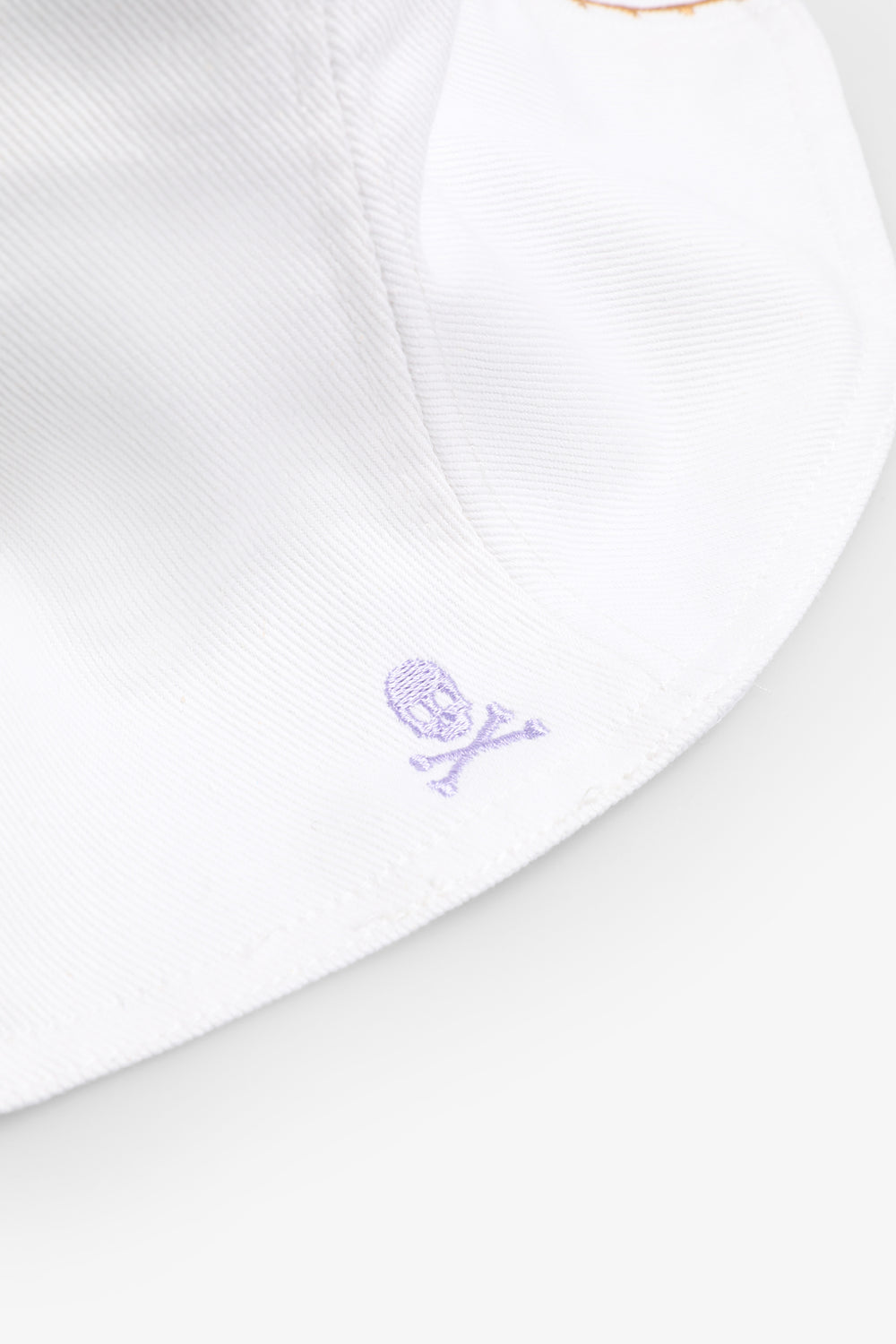 Gorro denim con detalles bordados. Confeccionado en 100% algodón. Detalle de calavera bordada a contraste.
