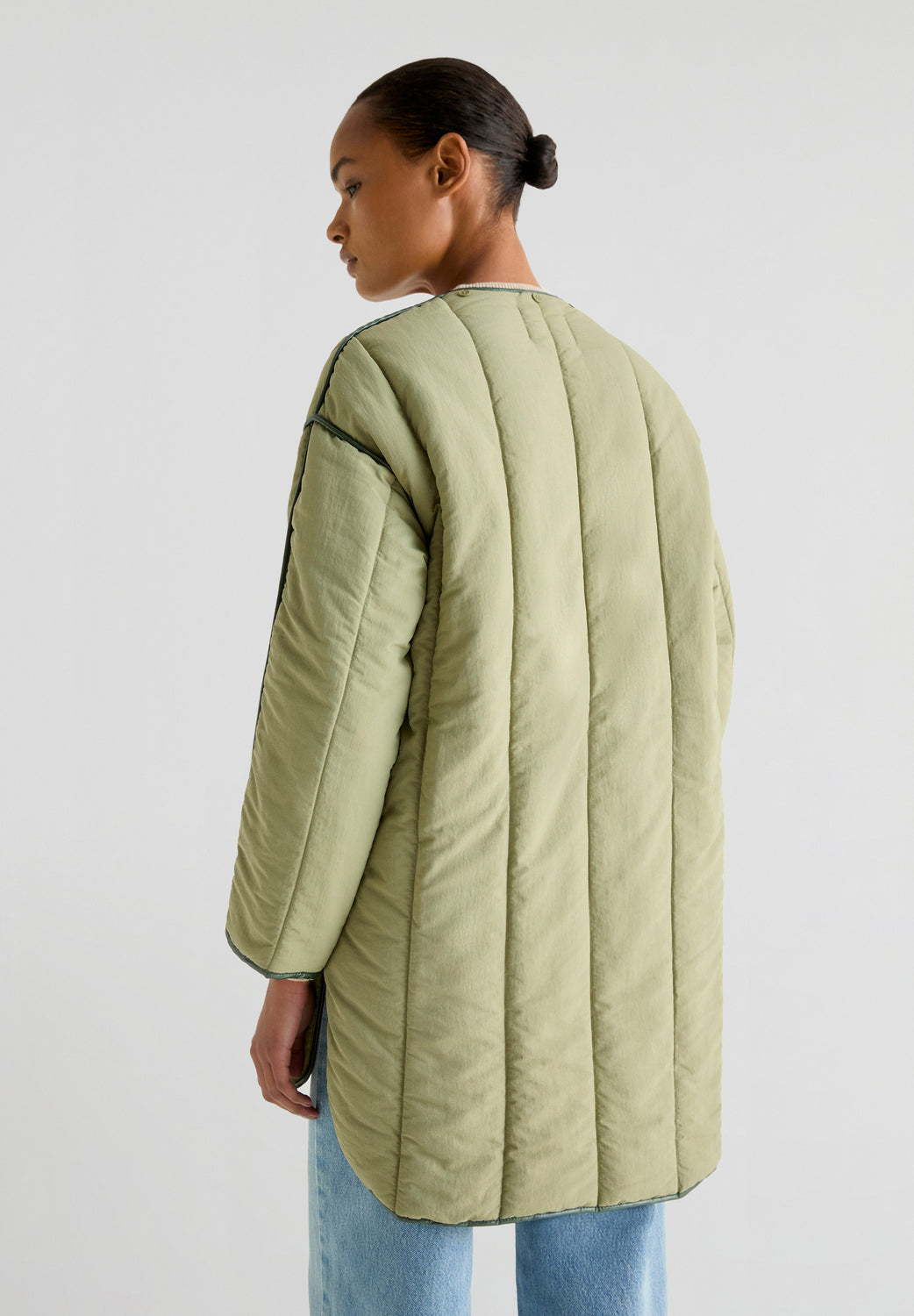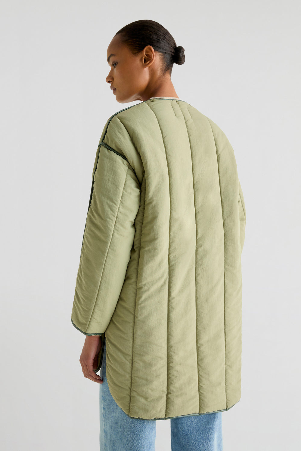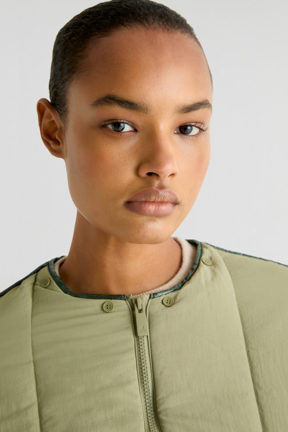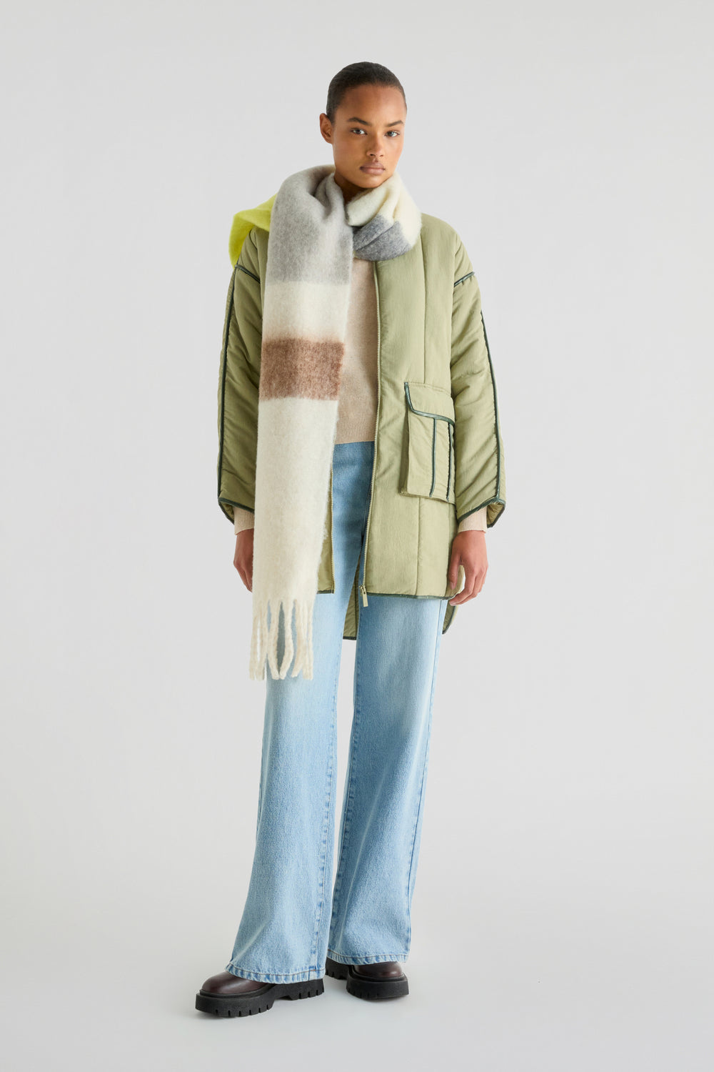Abrigo acolchado confeccionado en tejido técnico. Regular fit, cuello con capucha desmontable y con pelo desmontable y cierre con cremallera. Manga larga e interior de borrego. Bajo redondeado y aberturas laterales y detalle de pipping en costuras.