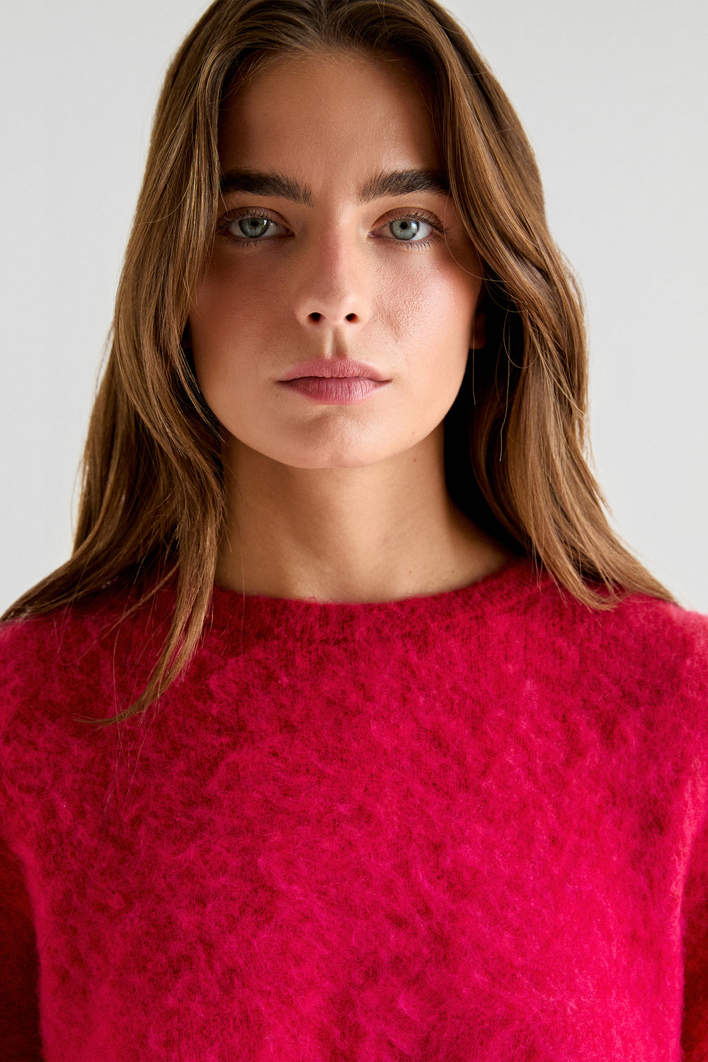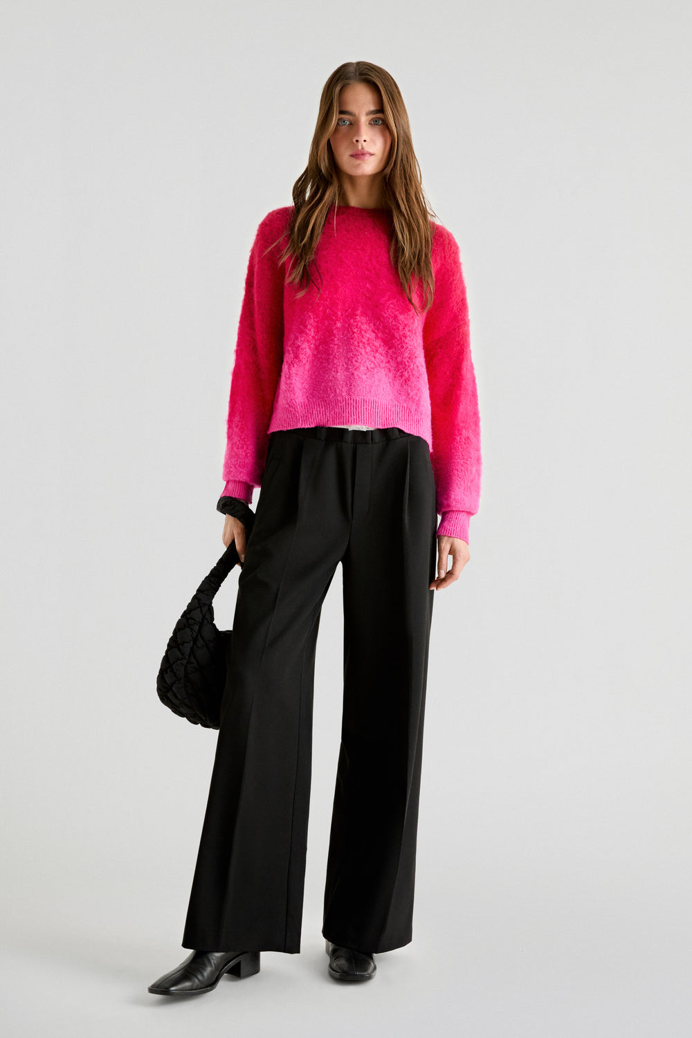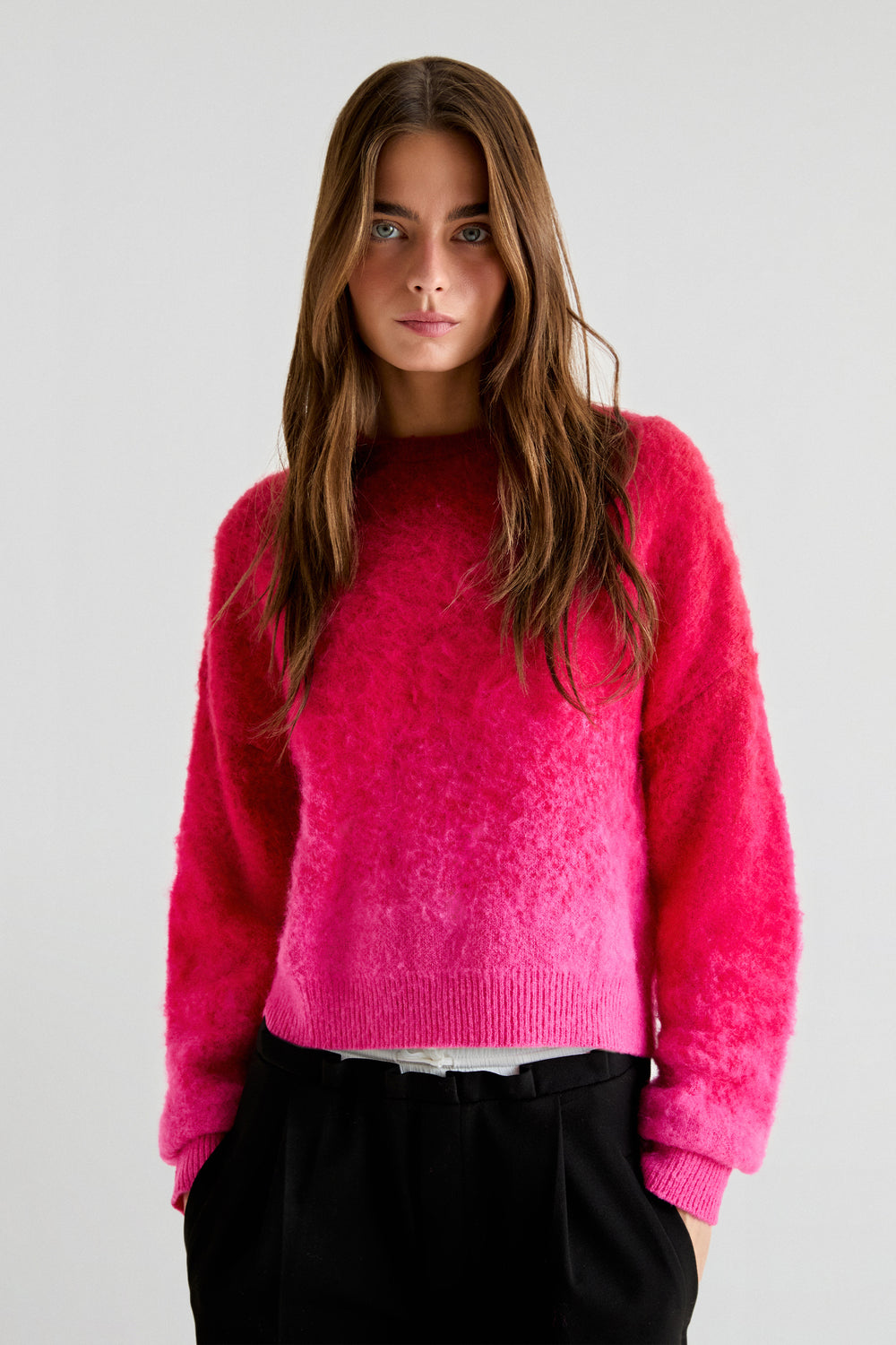 Jersey tie dye confeccionado en mezcla de lana y mohair. Regular fit, cuello redondo y manga larga.