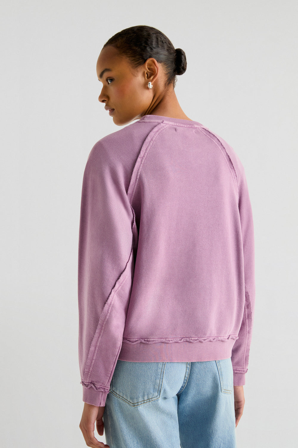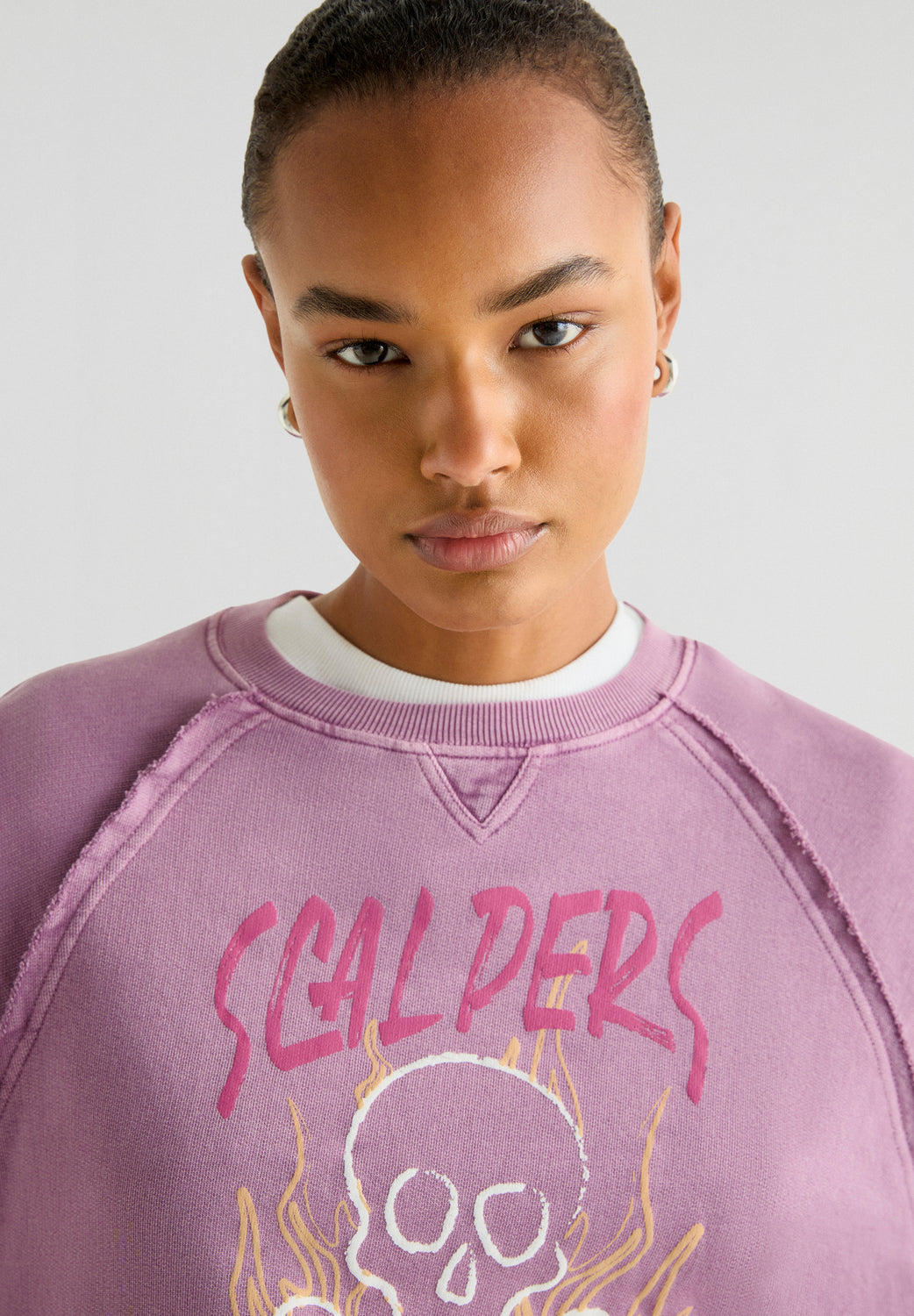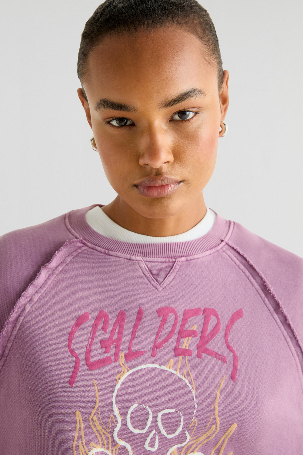 Sudadera lavada confeccionada en 100% algodón BCI. Regular fit, cuello redondo y manga larga. Detalle de print frontal de calavera.